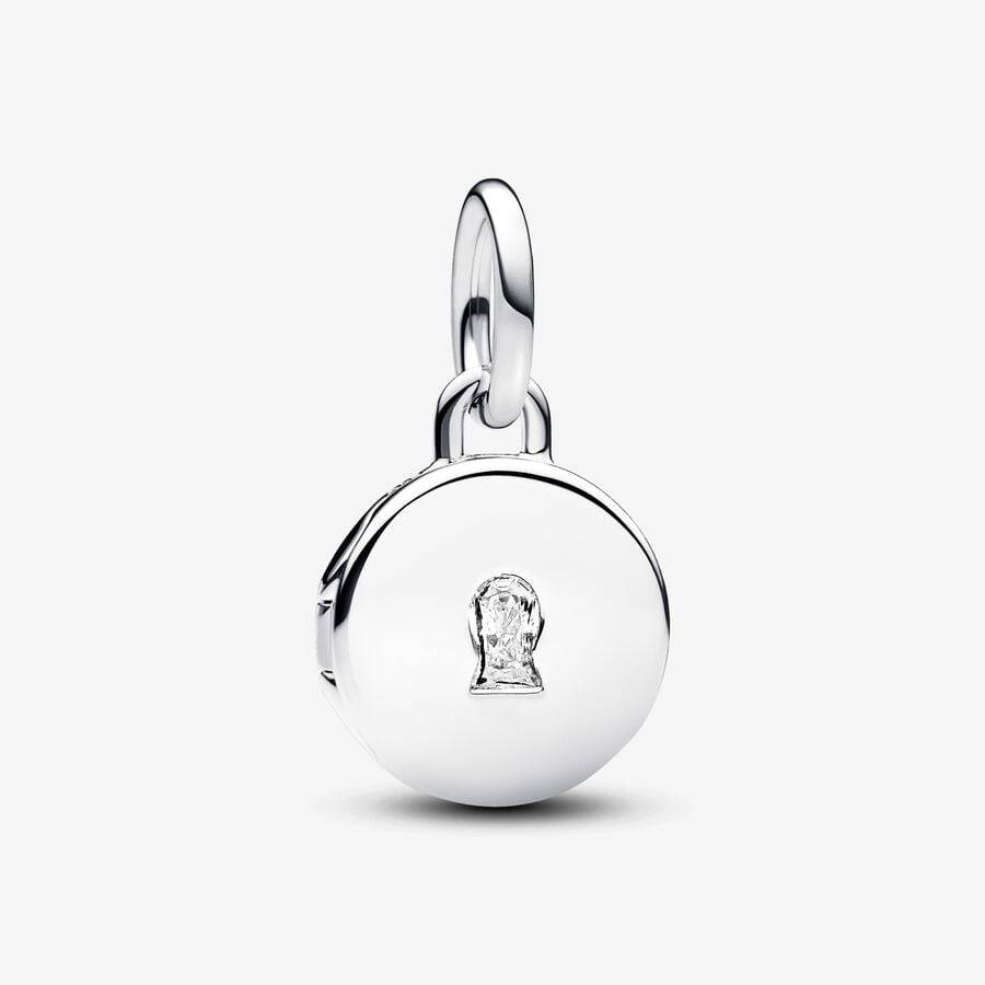 Carry the meanings you love most with this Opening Padlock Pendant. Crafted from 925 sterling silver, it features a padlock-shaped disc with a clear cubic zirconia stone in the shape of a lock on the front. The back can be personalized with a message or symbol to make it truly yours. The pendant also opens and closes securely, allowing you to insert a small photo, note, or lock of hair. The inside is inscribed with the words TODAY TOMORROW ALWAYS. Wear it on your favorite charm backing or give it to someone special to treasure your love.