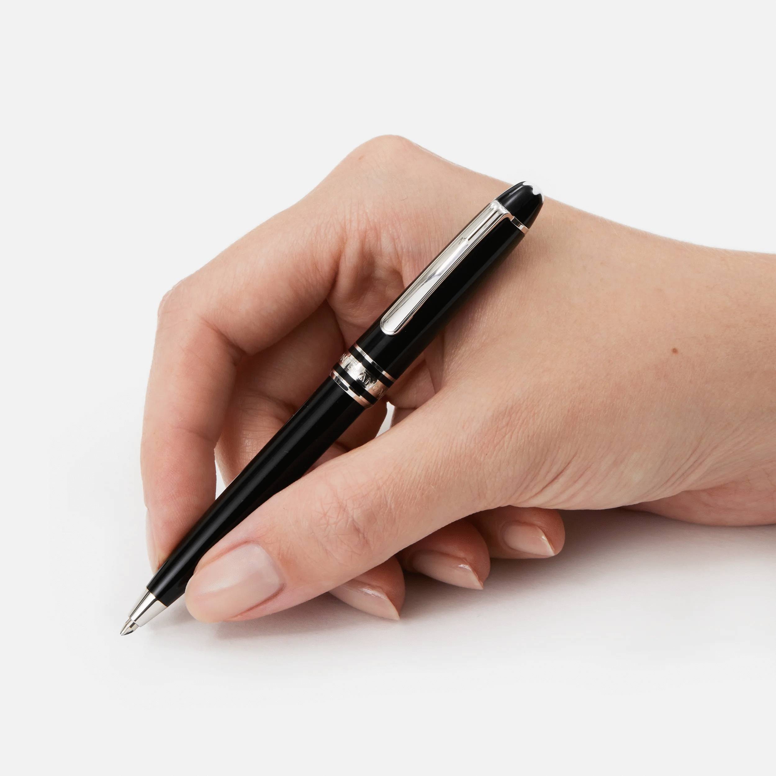 The Meisterstück Hommage à W.A. Mozart (small size) in black precious resin, with elegant platinum-coated details and surmounted by the white star emblem, becomes a unique design icon. Size 105.8 mm (Mini)