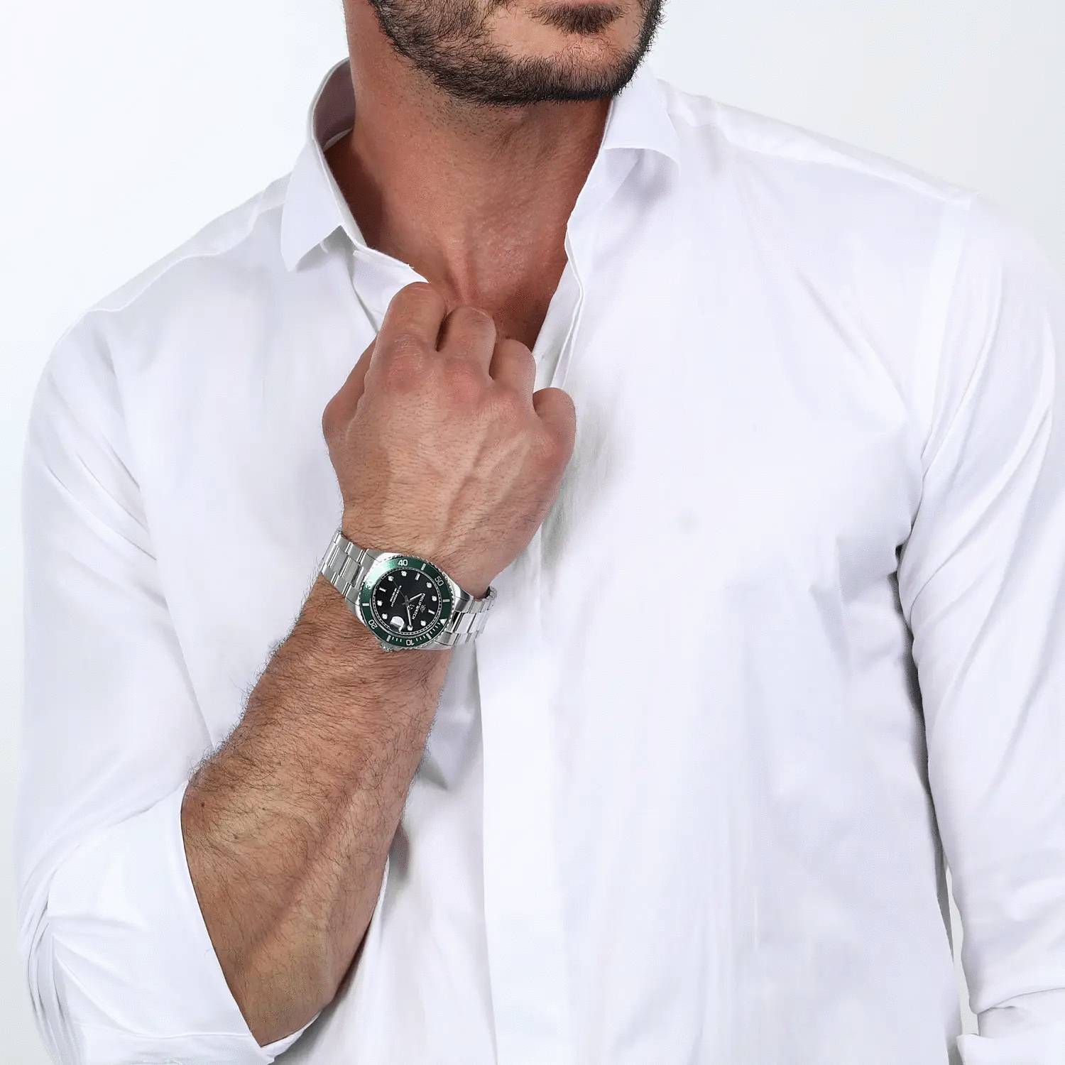 PHILIP WATCH CARIBE WATCH - R8253597086 - Philip Watch experience: Sport, Gender: Men, Case Material & Finish: Steel, Movement: Quartz, Case size: 42mm, Case Thickness: 11, Case Finishing: Satin, Case Colour: Silver, Green, Crystal: Anti-reflective sapphire crystal, Strap Material: Metal, Strap Colour: Silver, Clasp Type: Push-buttons and safety lock, Swiss made: Yes, Water resistant: 10 atm, Guarantee: Philip Watch 2 years guarantee, Packaging: Original Philip Watch