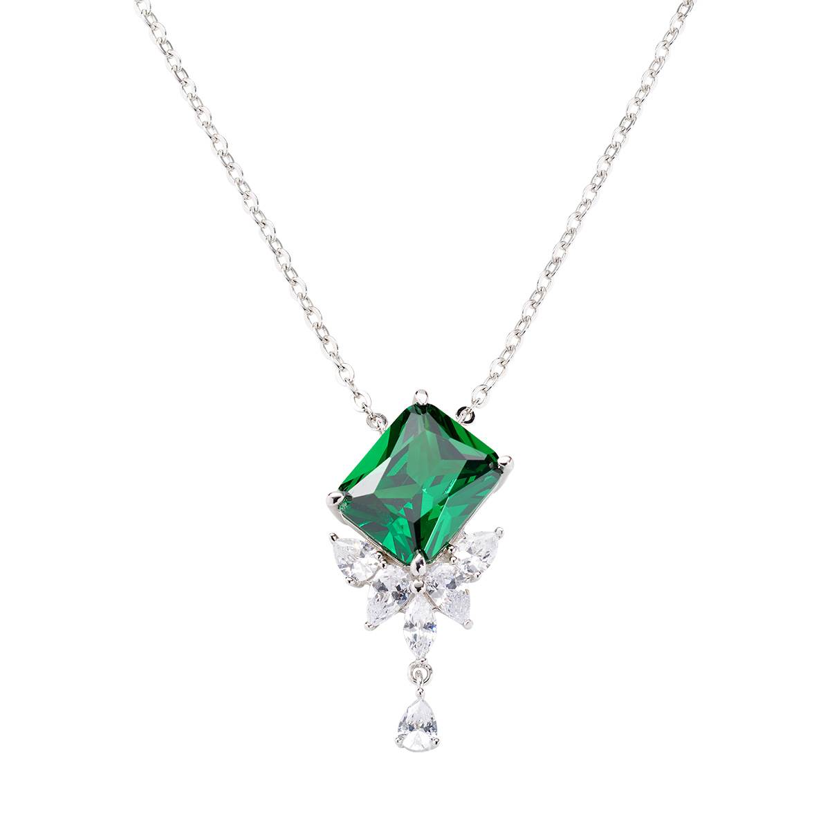 AG925 necklace with green zirconia and white zirconia - Rhodium - (Length 38 + 5 cm; charm 2 cm)