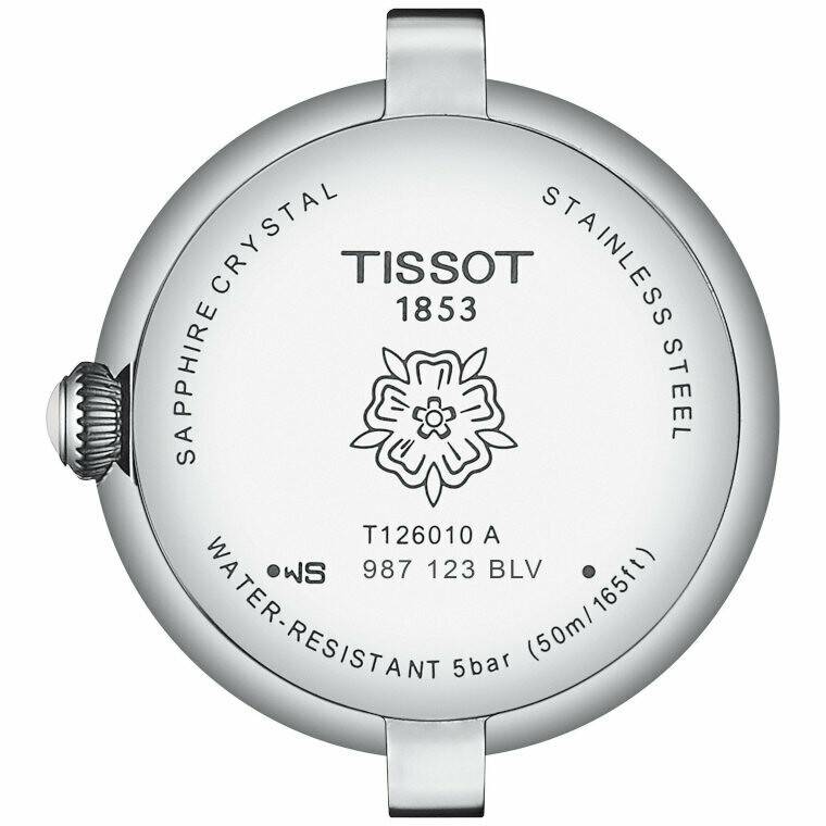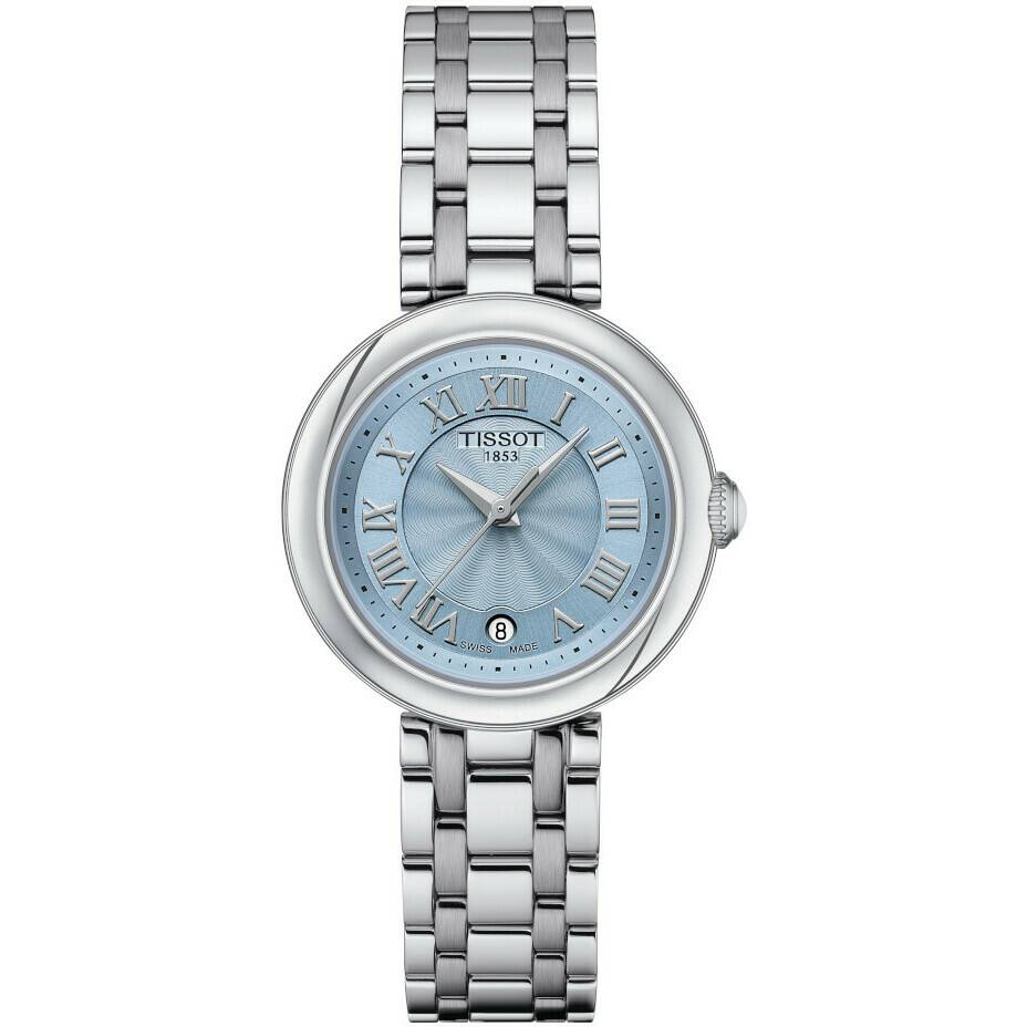 The Tissot Bellissima Small Lady stands out for its elegant design and beautiful details. This model features a Swiss-made quartz movement and a scratch-resistant sapphire crystal with Roman numerals and a date display. The 316L stainless steel case frames the blue dial and a 316L stainless steel bracelet with a push-button butterfly clasp.