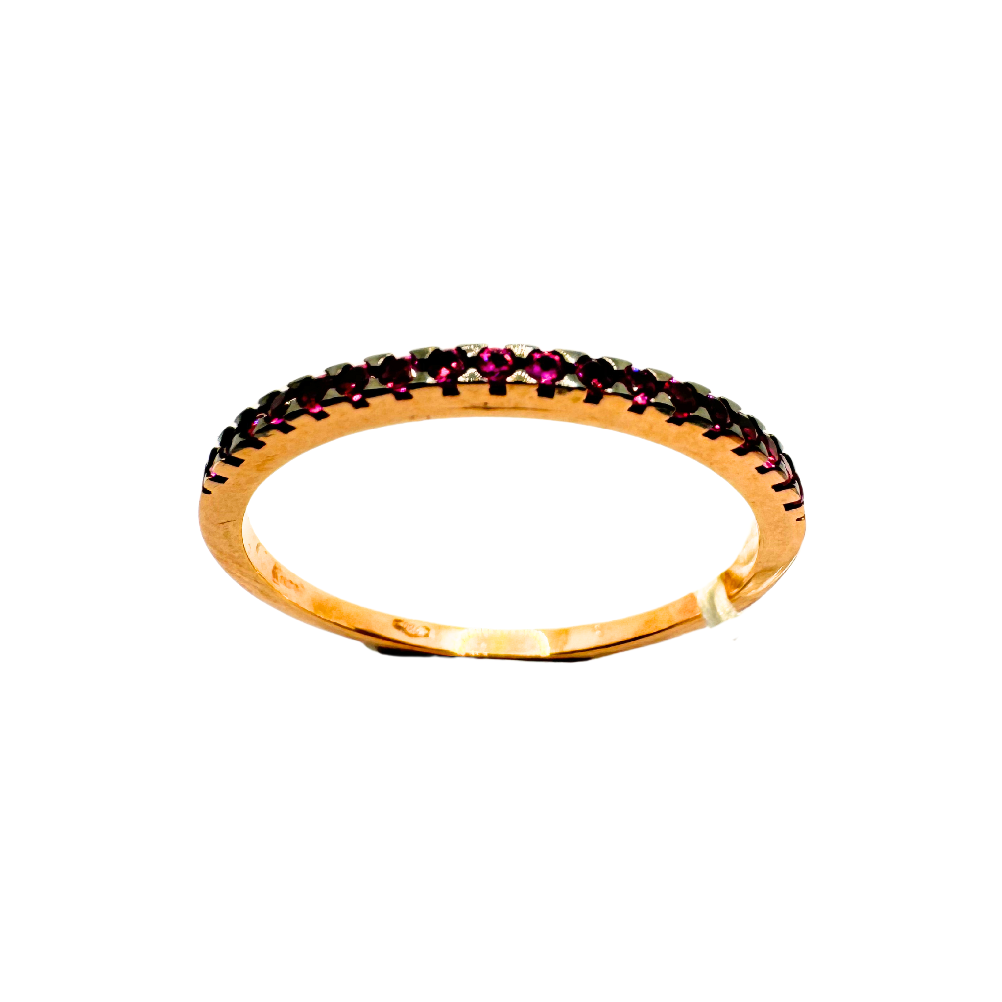 18K Rose Gold Eternity Ring with Fuchsia Stones and Burnished Tips