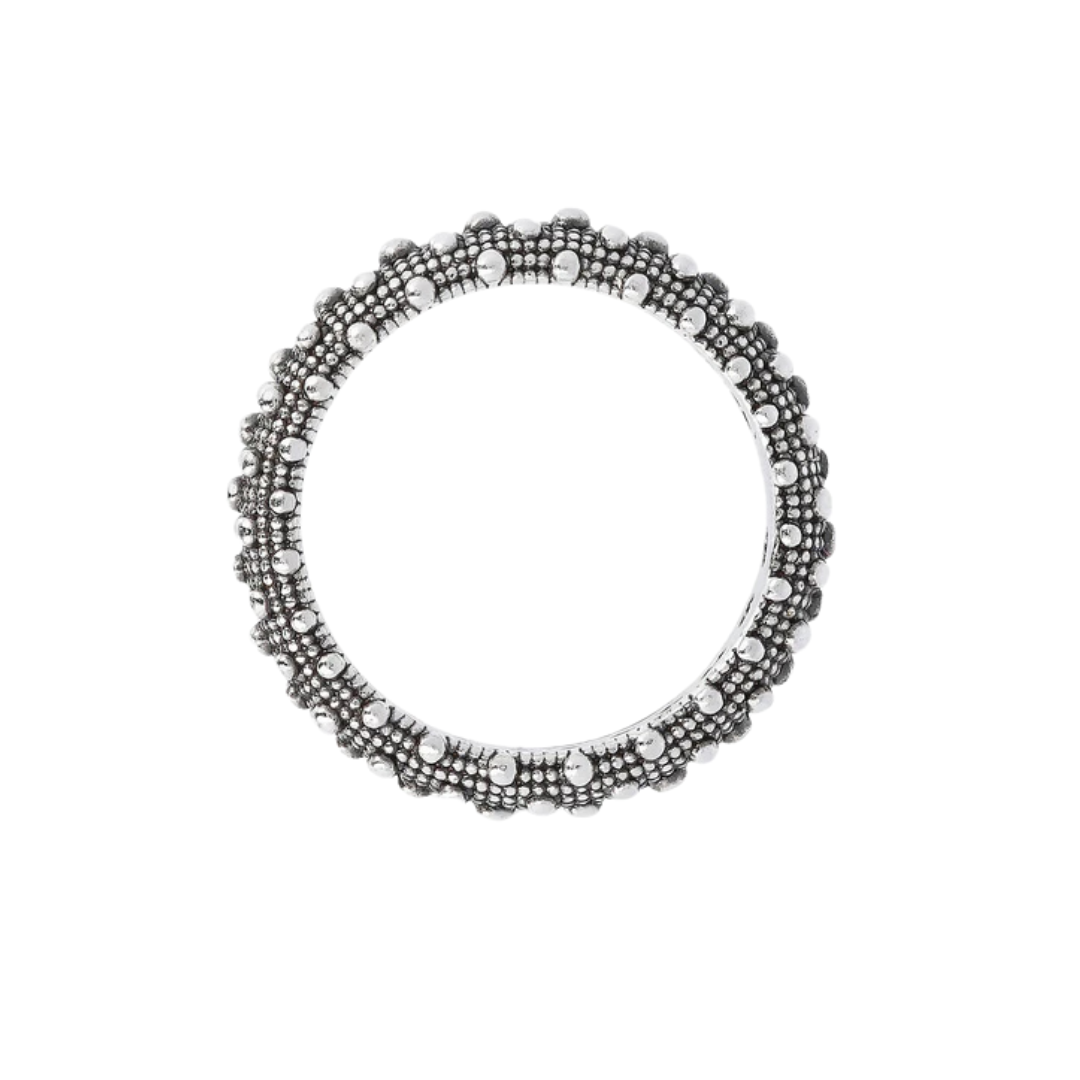 Anillo unisex Albert M. realizado en plata 925 con textura de erizo de mar caracterizada por un rico trabajo 'punteado' con pequeñas esferas de plata que cubren la superficie.