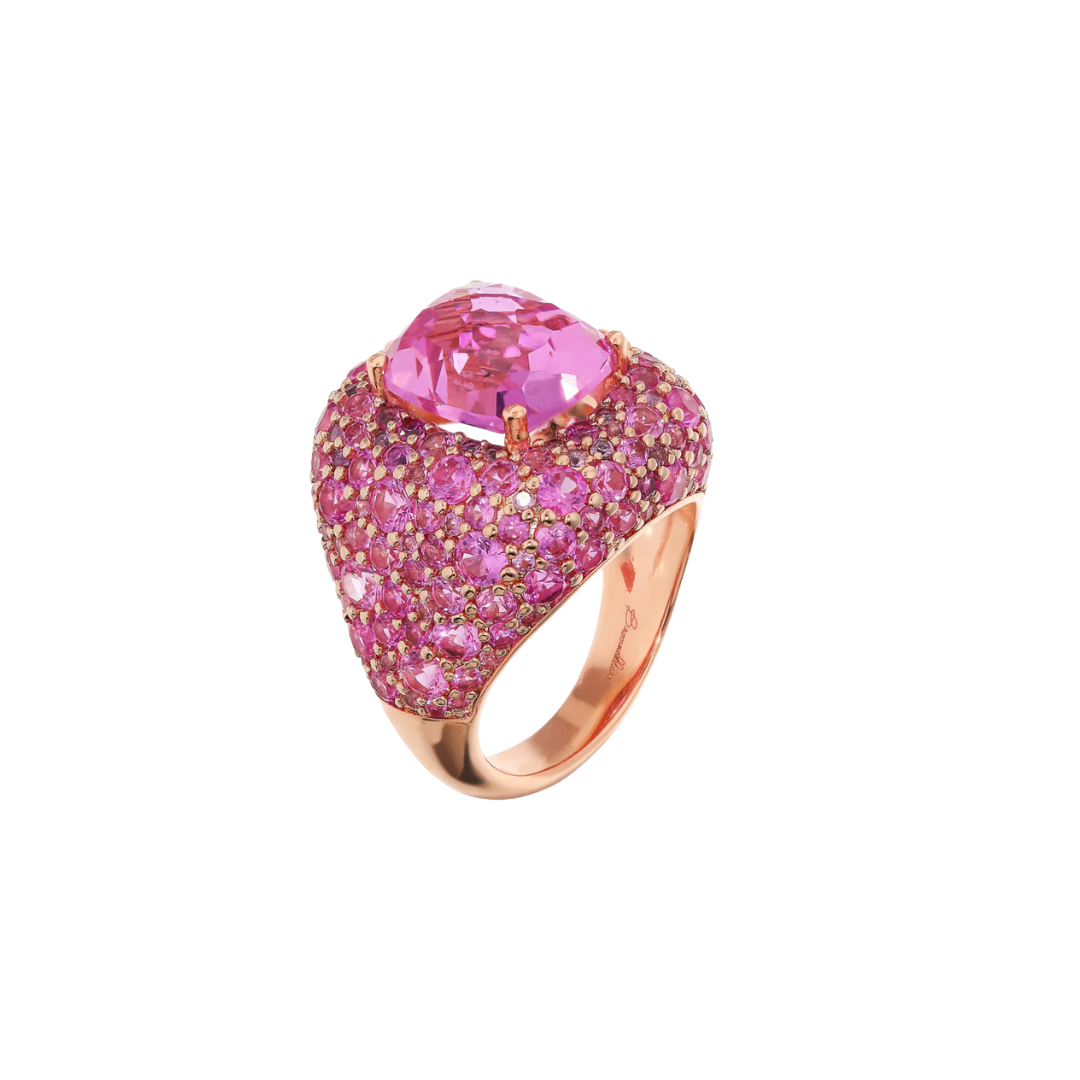 Anillo de caballero Bronzallure realizado en aleación Golden Rosé, bañado en oro rosa de 18kt, con diseño degradado con superficie pavé y piedra preciosa prismática central facetada (12x10 mm).
