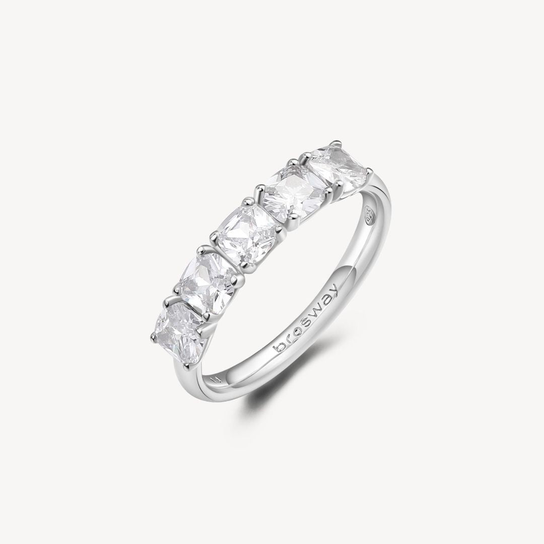 Anello in argento rodiato 925‰ con cushion cubic zirconia.
