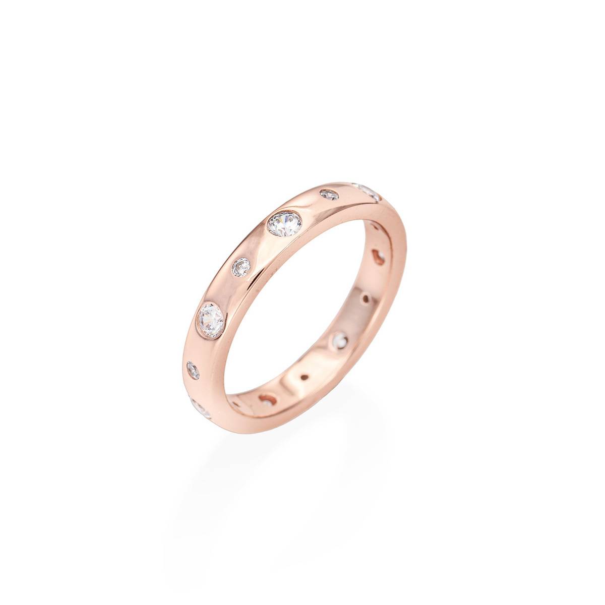 Esta alianza, elaborada en plata con baño de oro rosa de 18 quilates y circonitas blancas, es un anillo dedicado a las parejas, elegido para celebrar un momento especial en su relación o un hito en su amor. Es un anillo especial que se intercambia para formalizar una unión.