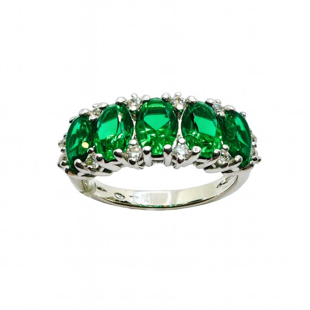 Anillo de oro blanco de 18 quilates con piedras verdes y circonitas