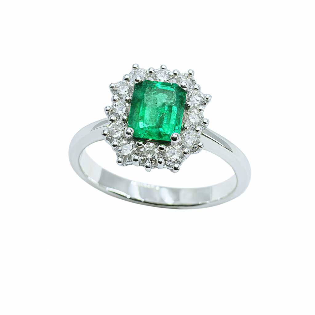 Anillo Mirco Visconti de oro blanco con esmeralda de talla octogonal y diamantes