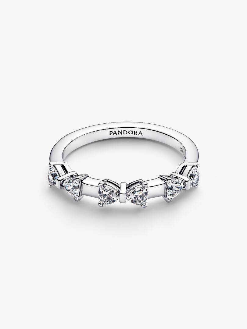 Deja que la luz te envuelva. Este anillo de plata de ley 925 luce tres lazos delicadamente engarzados que simbolizan las conexiones más importantes de la vida.