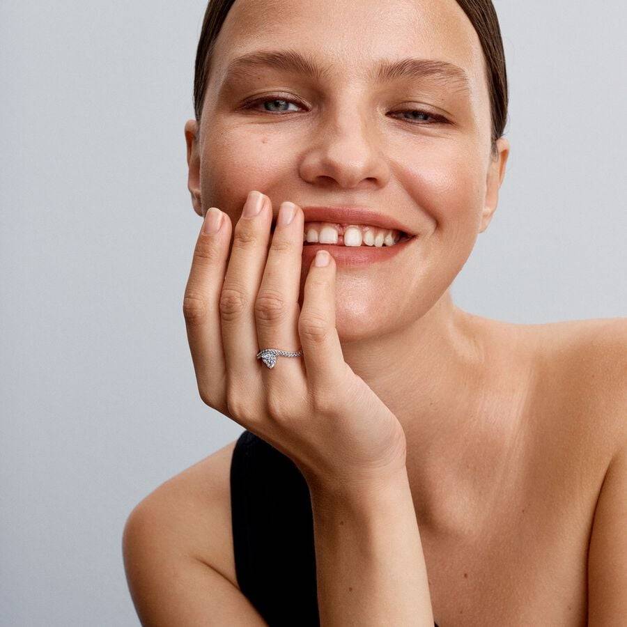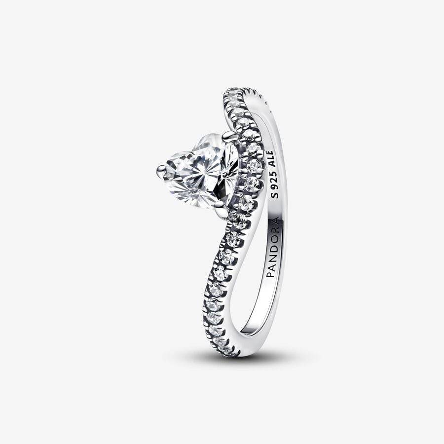 Este elegante anillo de plata de ley 925 luce una piedra en forma de corazón engastada junto a una delicada banda que evoca el movimiento de una ola. La mitad superior de la banda está decorada con pavé para un toque deslumbrante. Combínalo con otros anillos de olas para un look coordinado.