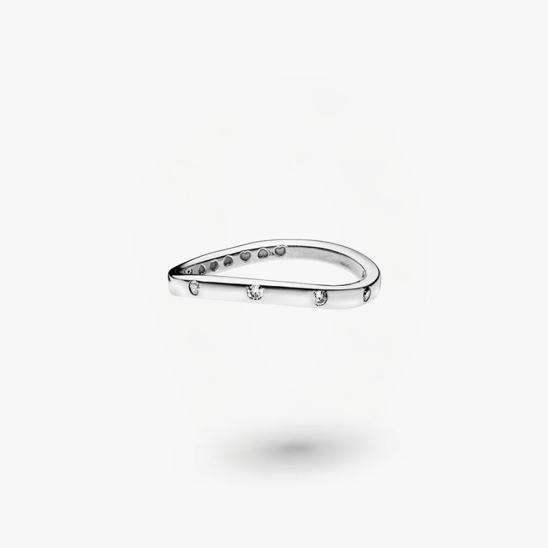 Minimalista y elegante, este anillo de plata de ley 925, acabado a mano, tiene forma ovalada con un borde ligeramente ondulado, que evoca un torbellino sacudido por un impulso repentino y apasionado. La pieza añade un toque de brillo gracias a las circonitas cúbicas engastadas a ras y es perfecto para combinar con pendientes u otros anillos y lograr un look elegante y atemporal.