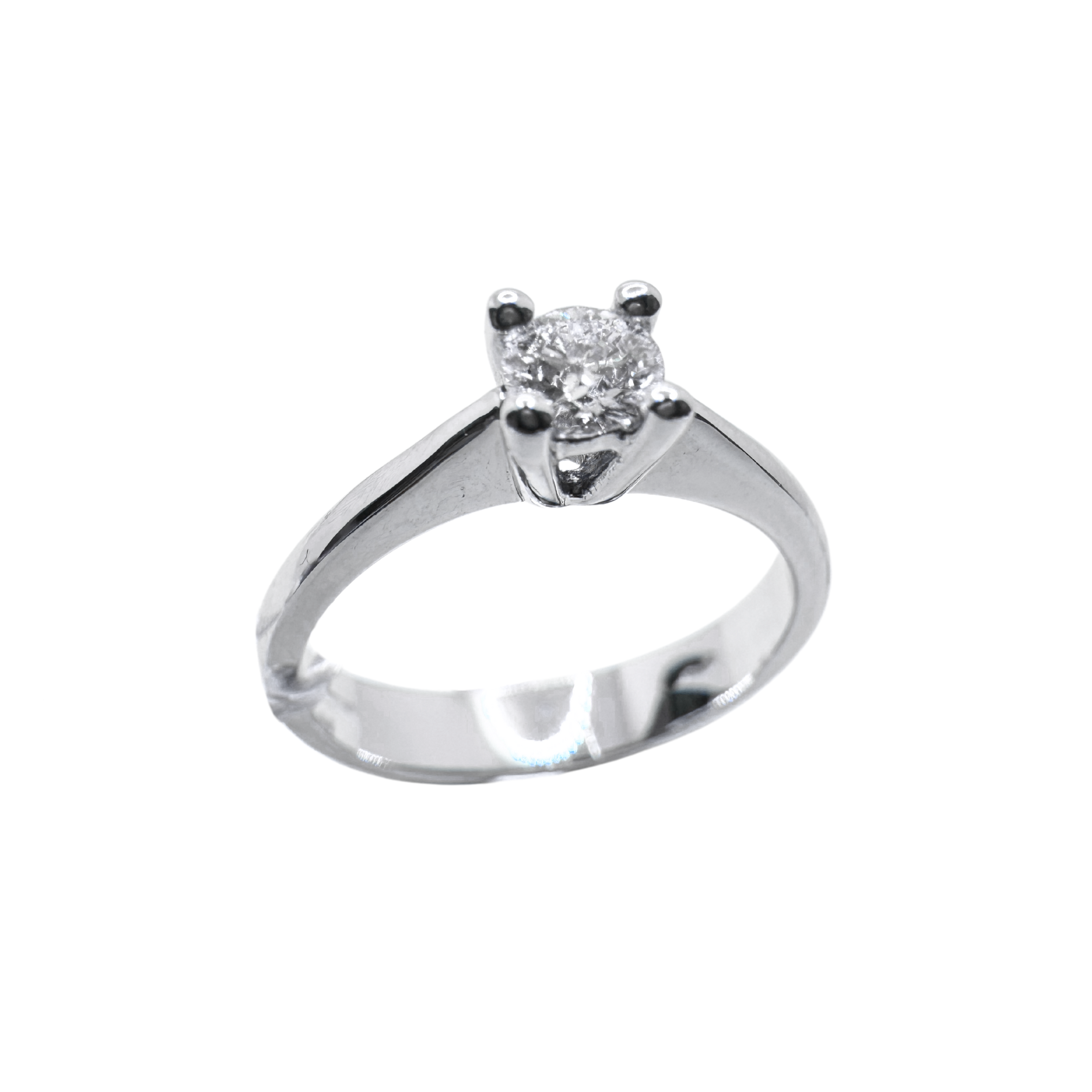 Anillo solitario Iannelli hecho a mano en oro blanco con diamante de talla Da Vinci