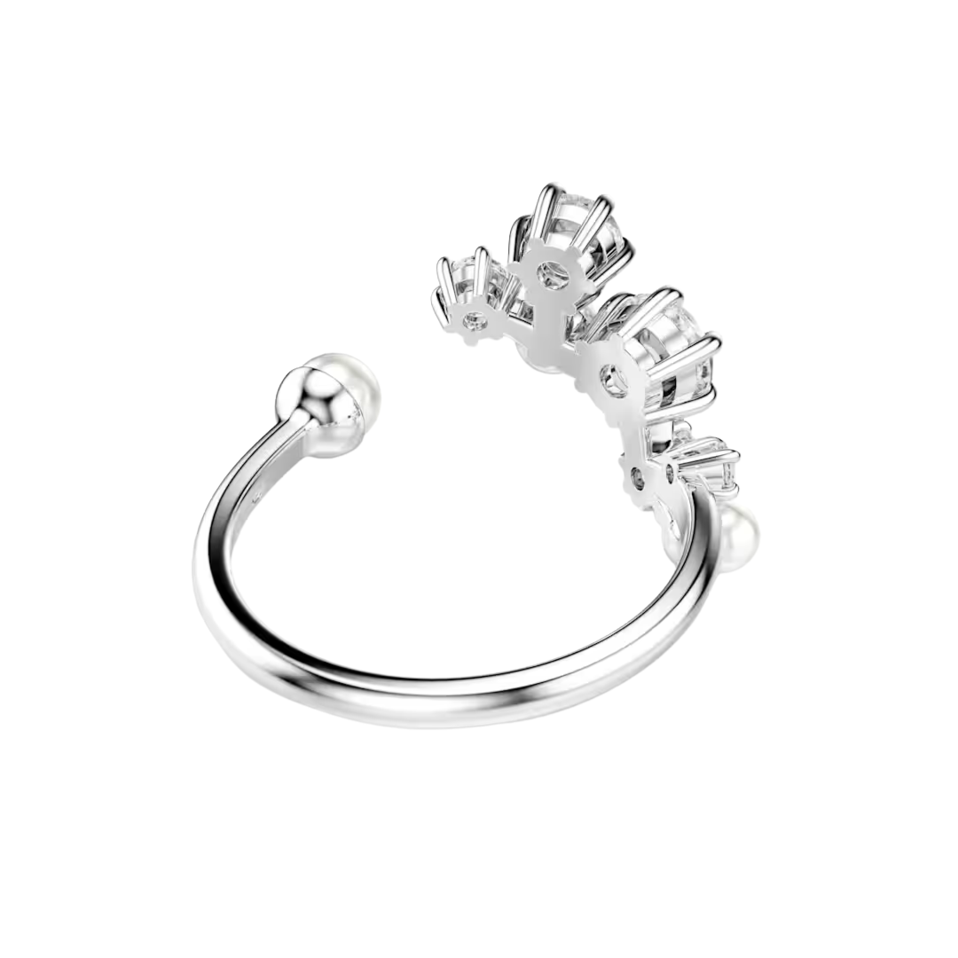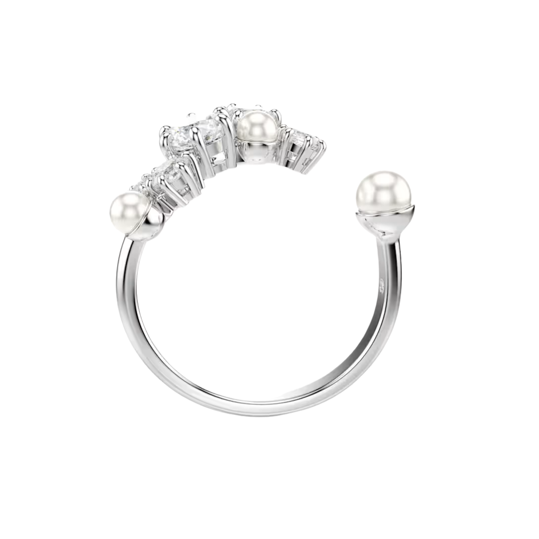 Sostén las estrellas en tus manos con este brillante anillo Constella. Su diseño abierto está rodiado y adornado con circonitas redondas y perlas de cristal Swarovski en una variedad de llamativos tamaños. Esta creación transportará tu estilo al cielo nocturno y añadirá un toque cósmico a cualquier ocasión.