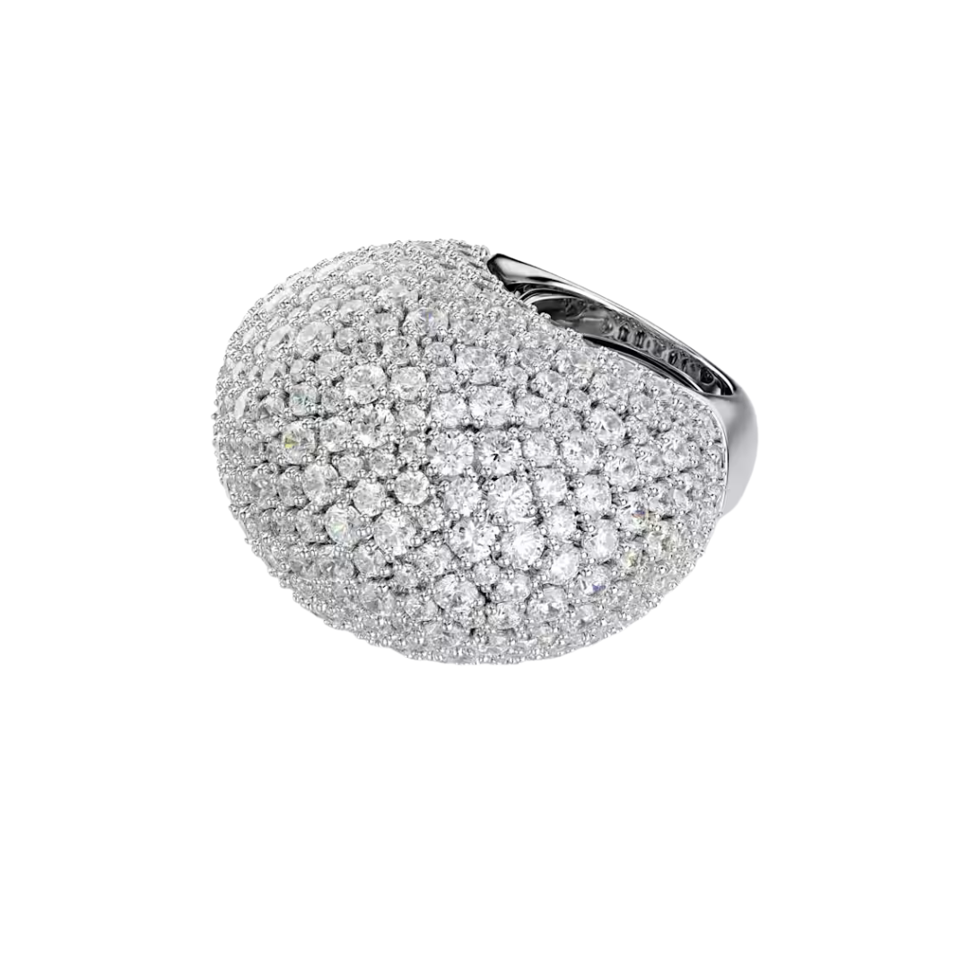 Este anillo de cóctel abovedado es la esencia de la "Extravagancia Alegre". Su deslumbrante diseño está elaborado con baño de rodio y luce un impresionante adorno de circonitas Swarovski transparentes engastadas en chatonage. Para mayor comodidad, el anillo es ajustable. Combínalo con unos impresionantes pendientes Sublima o un colgante para darle un toque de brillo a tu look.