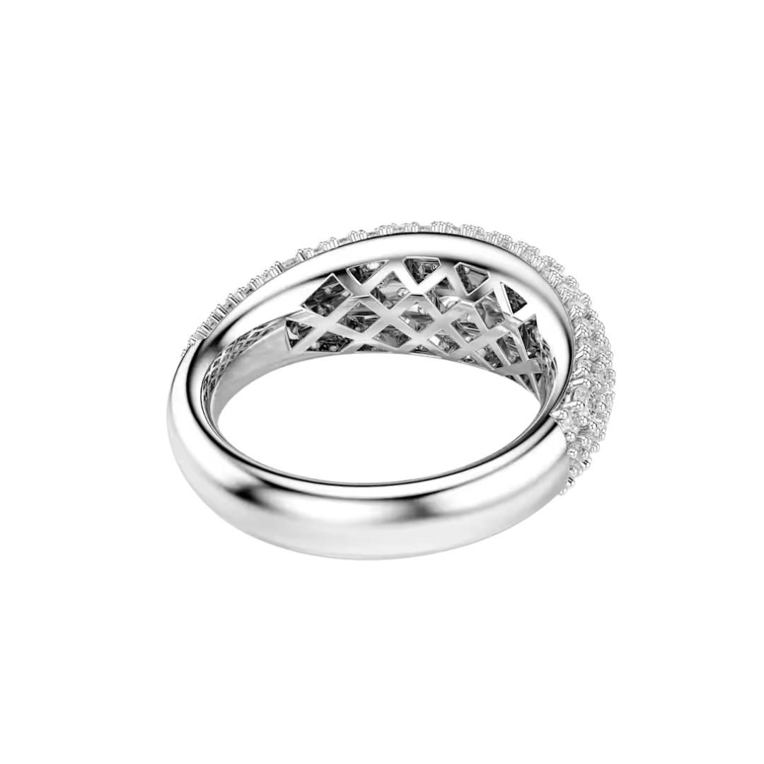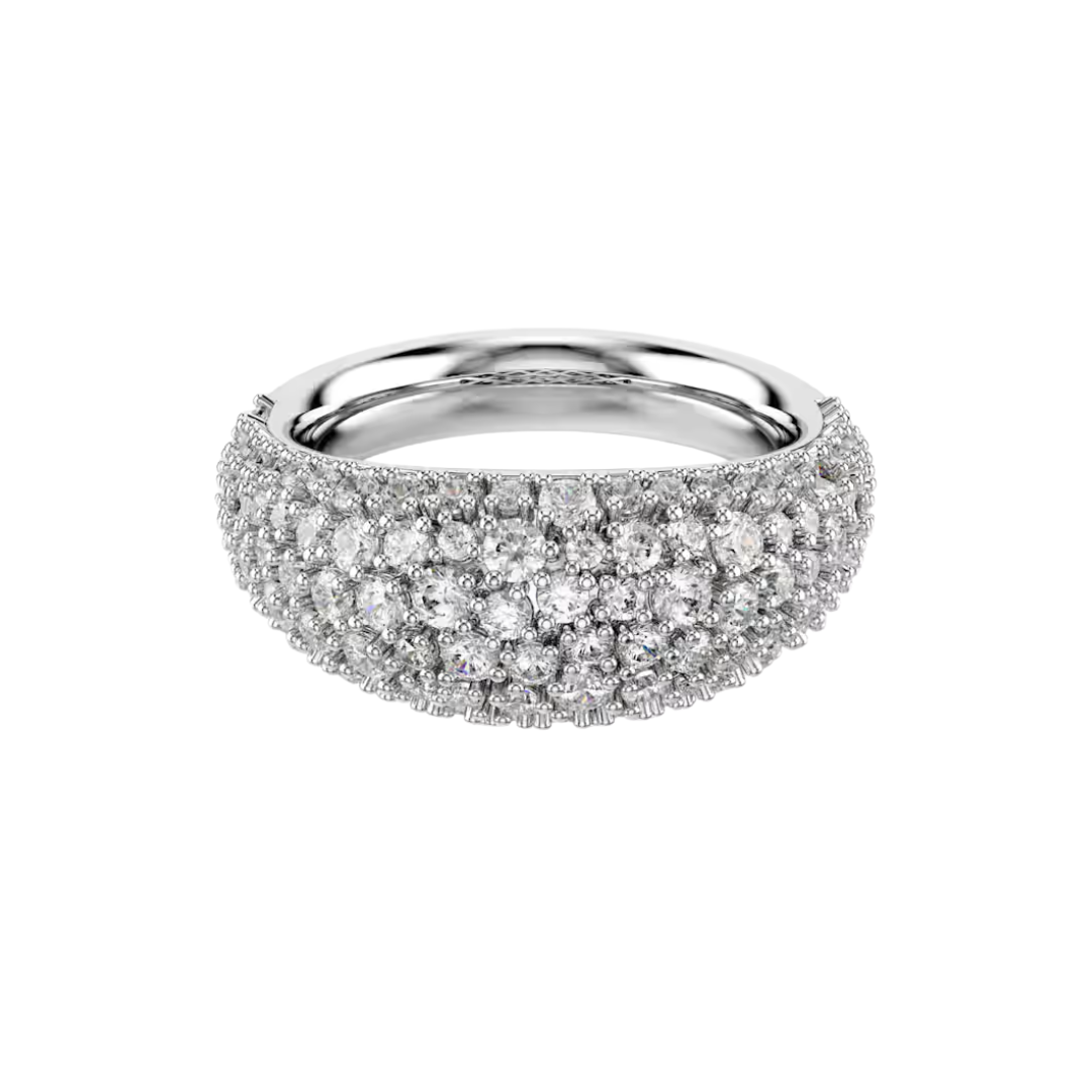 Diseñado para un impacto máximo, este anillo abovedado está elaborado con baño de rodio y luce un impresionante adorno de circonitas Swarovski transparentes engastadas en chatonage. Ideal para momentos donde la elegancia y la magia son esenciales.