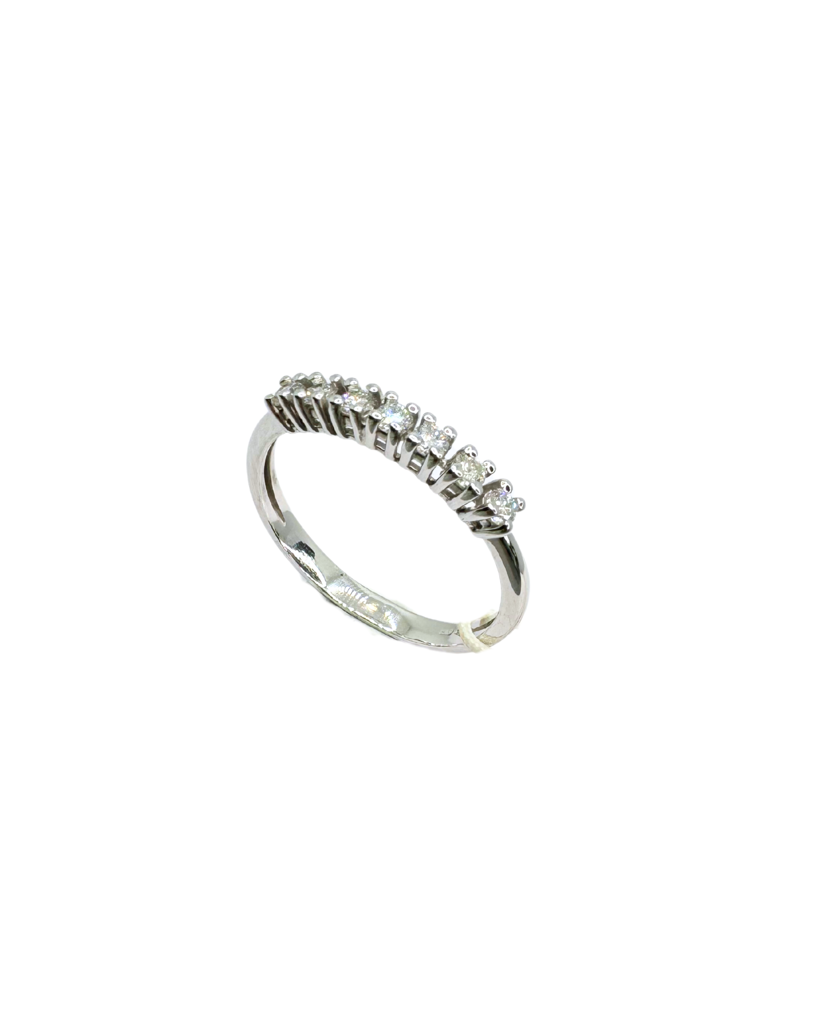 Anillo de eternidad de 7 piedras de oro blanco de 18 quilates y diamantes.