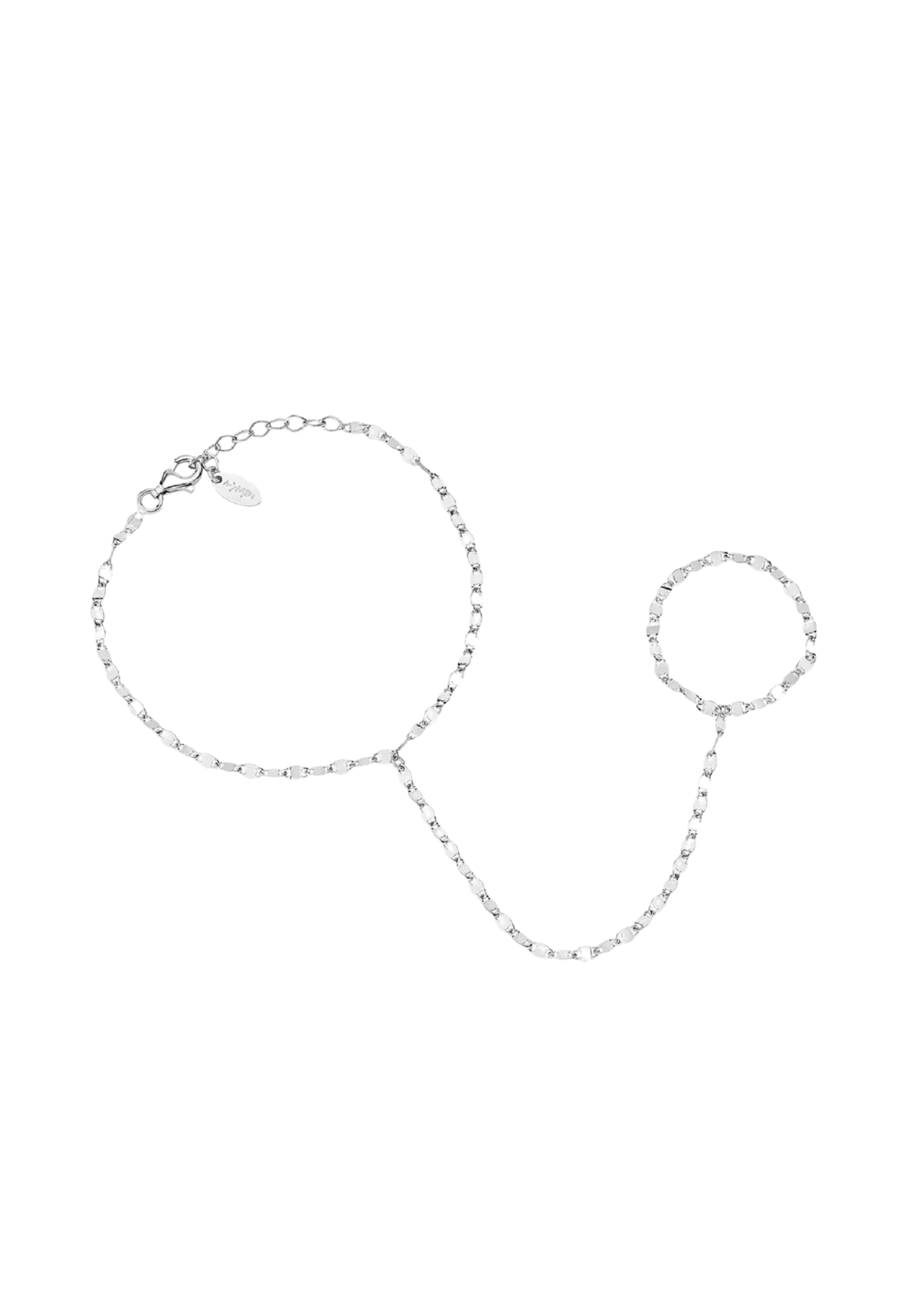 El baciamano, compuesto por una fina cadena de plata que conecta la pulsera con el anillo, se lleva en el dedo índice o corazón. Es una joya vanguardista con una historia centenaria. Originalmente usado solo por las mujeres más influyentes de la sociedad, quienes lo usaban para expresar su estatus, hoy en día esta joya vuelve a ser protagonista en los looks más modernos gracias a su elegante espíritu bohemio.