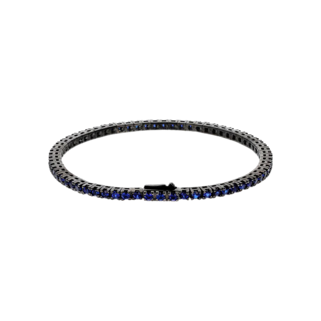Pulsera de tenis bicolor para hombre Albert M., hecha de plata 925 y adornada con circonitas cúbicas redondas. La característica distintiva de esta pulsera es que el cierre de caja también está recubierto de circonitas cúbicas, una cualidad luminosa. Disponible en dos tamaños: pequeño (19 cm) y grande (21 cm), con baño de rutenio o rodio.
