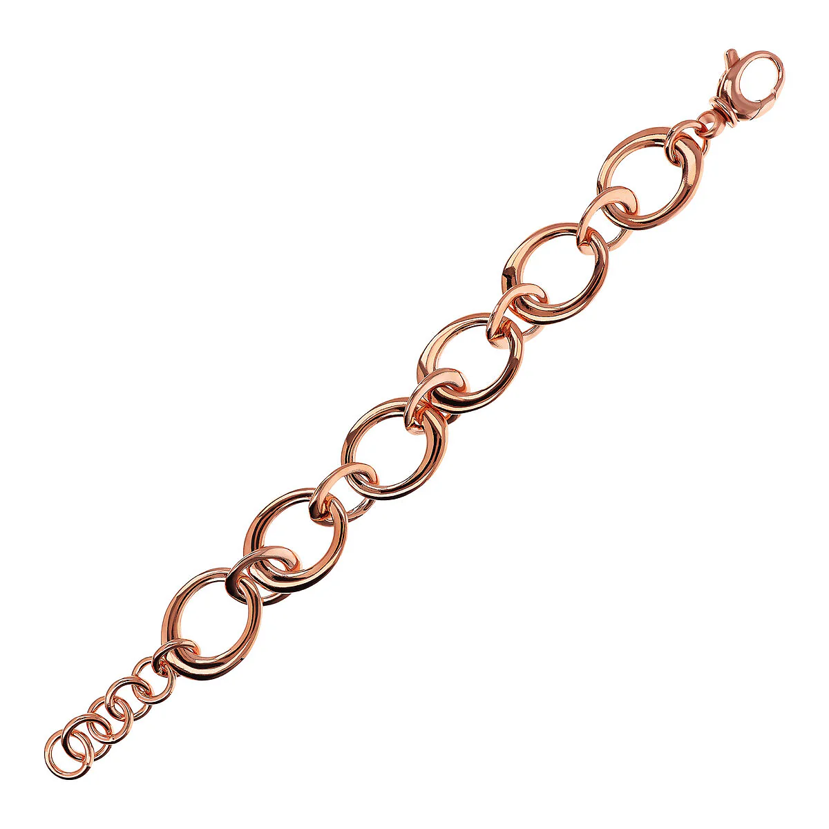 Pulsera Bronzallure de aleación Golden Rosé, chapada en oro rosa de 18 kt, con eslabones ovalados que se alternan con anillas. Largo: 18 + 5 cm. Cierre de mosquetón.