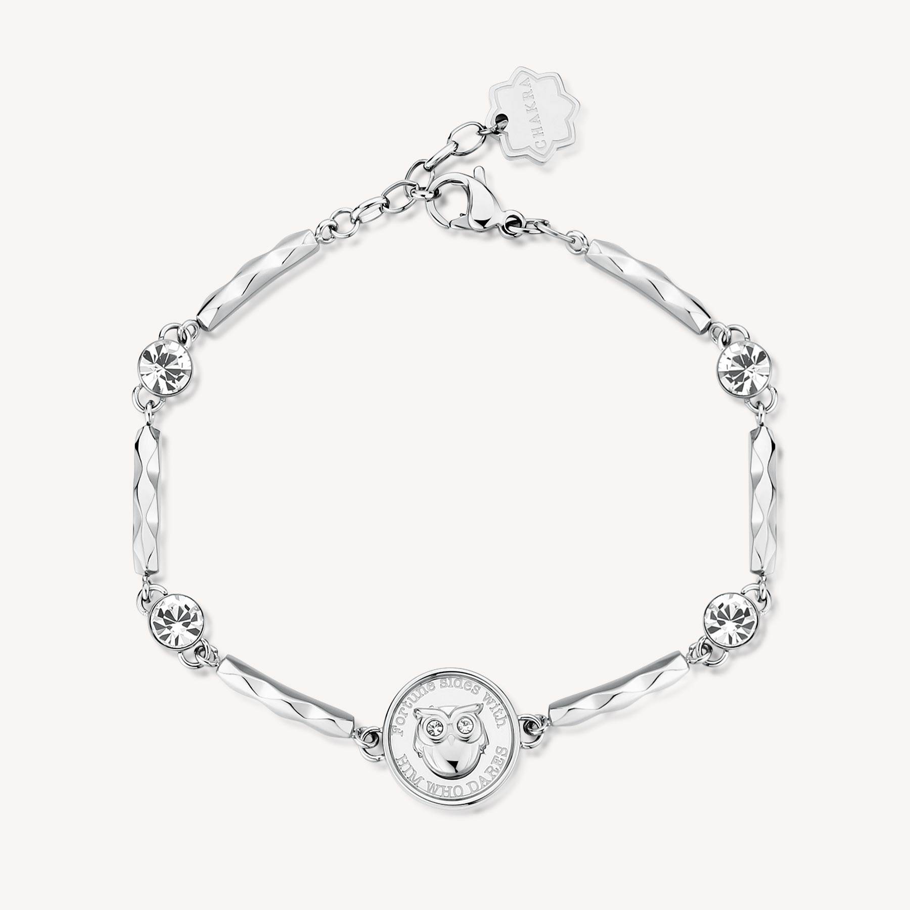 La pulsera de acero inoxidable de 18 cm forma parte de la colección Chakra. Regalar una joya Brosway con un búho, símbolo de suerte e inteligencia, es recordar a nuestros seres queridos el cariño que sentimos por ellos. Un abrazo constante pero discreto, casi indisoluble.