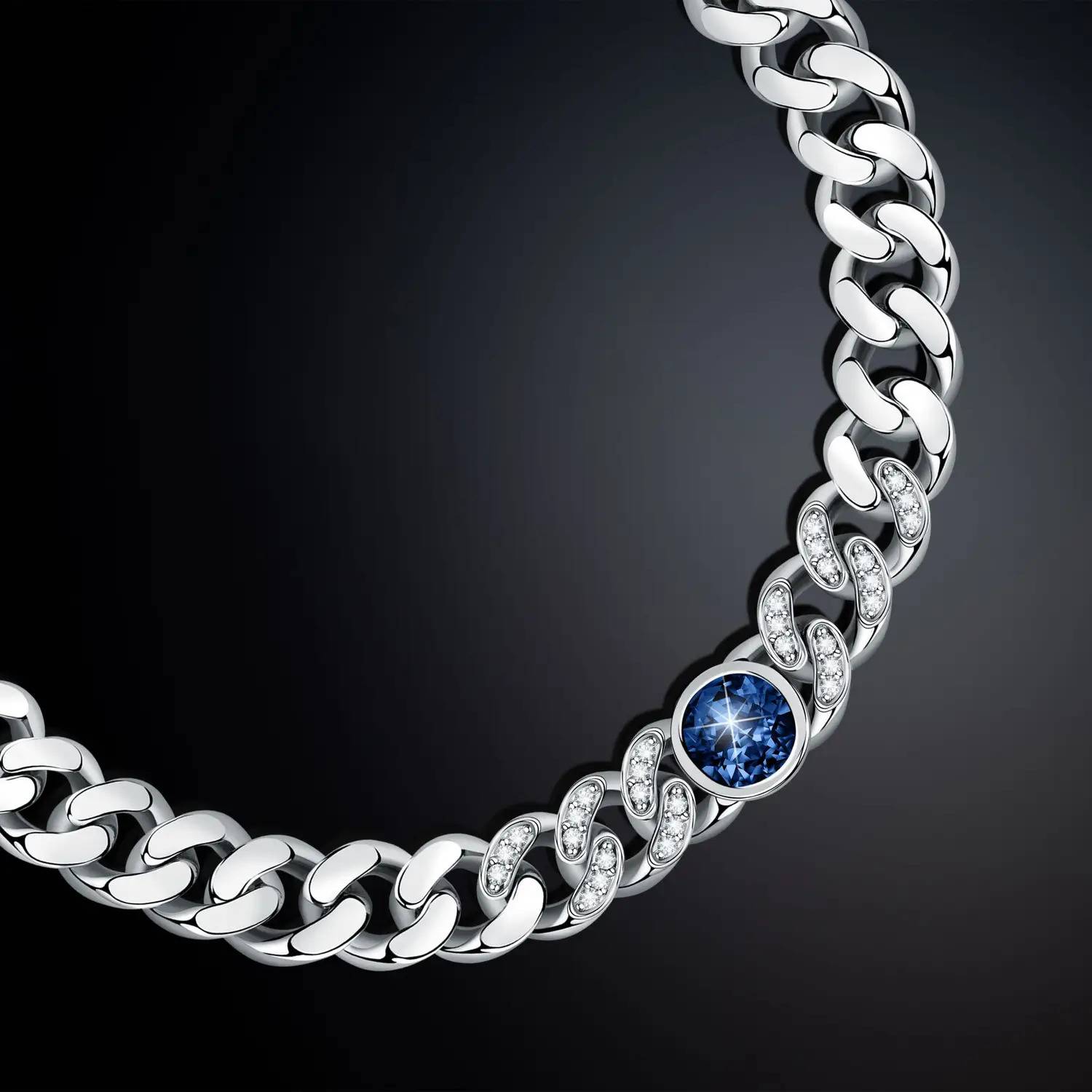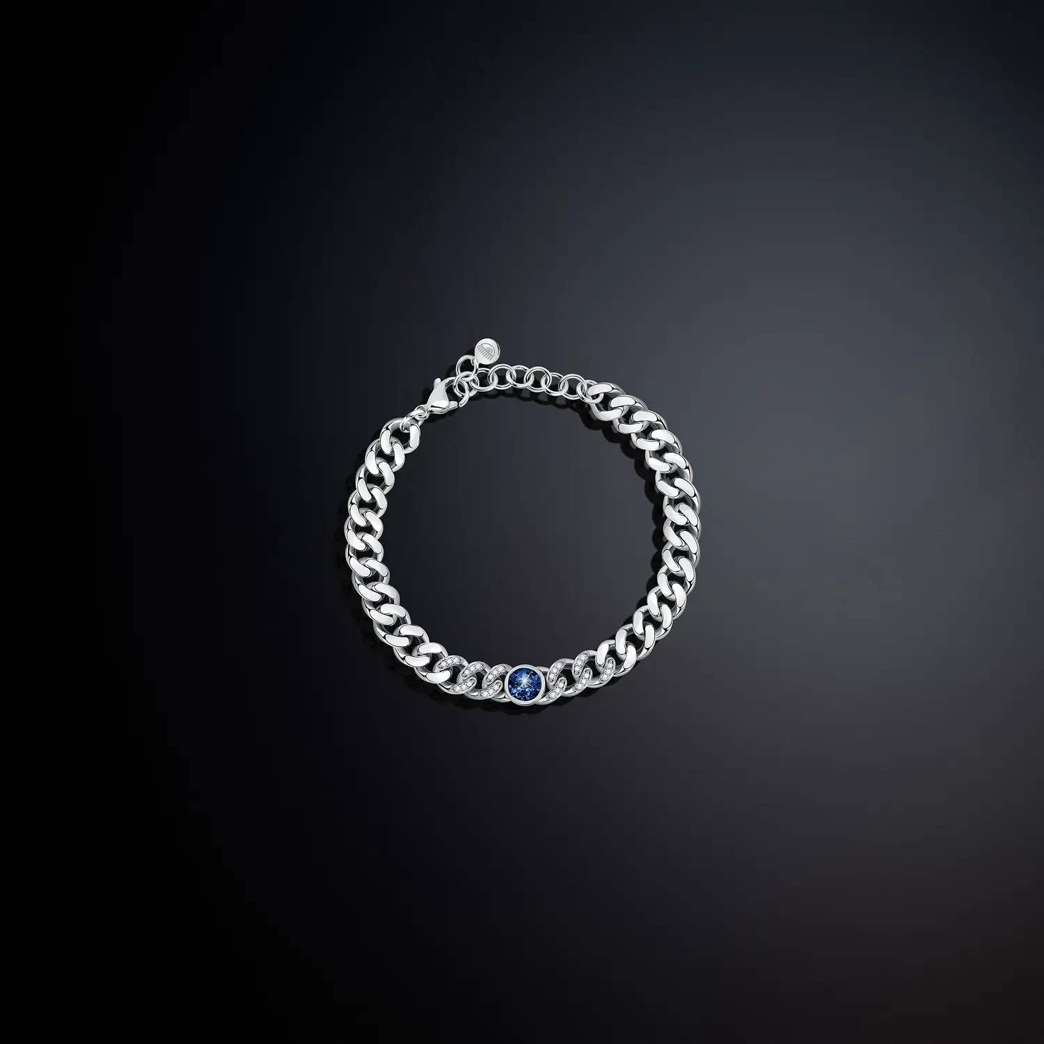 Pulsera para mujer, colección Bossy Chain de Chiara Ferragni. Pulsera de cadena de plata con pavé de circonitas y una piedra azul central. Descubre la nueva y actualizada colección Ferragni; un imprescindible de esta temporada.