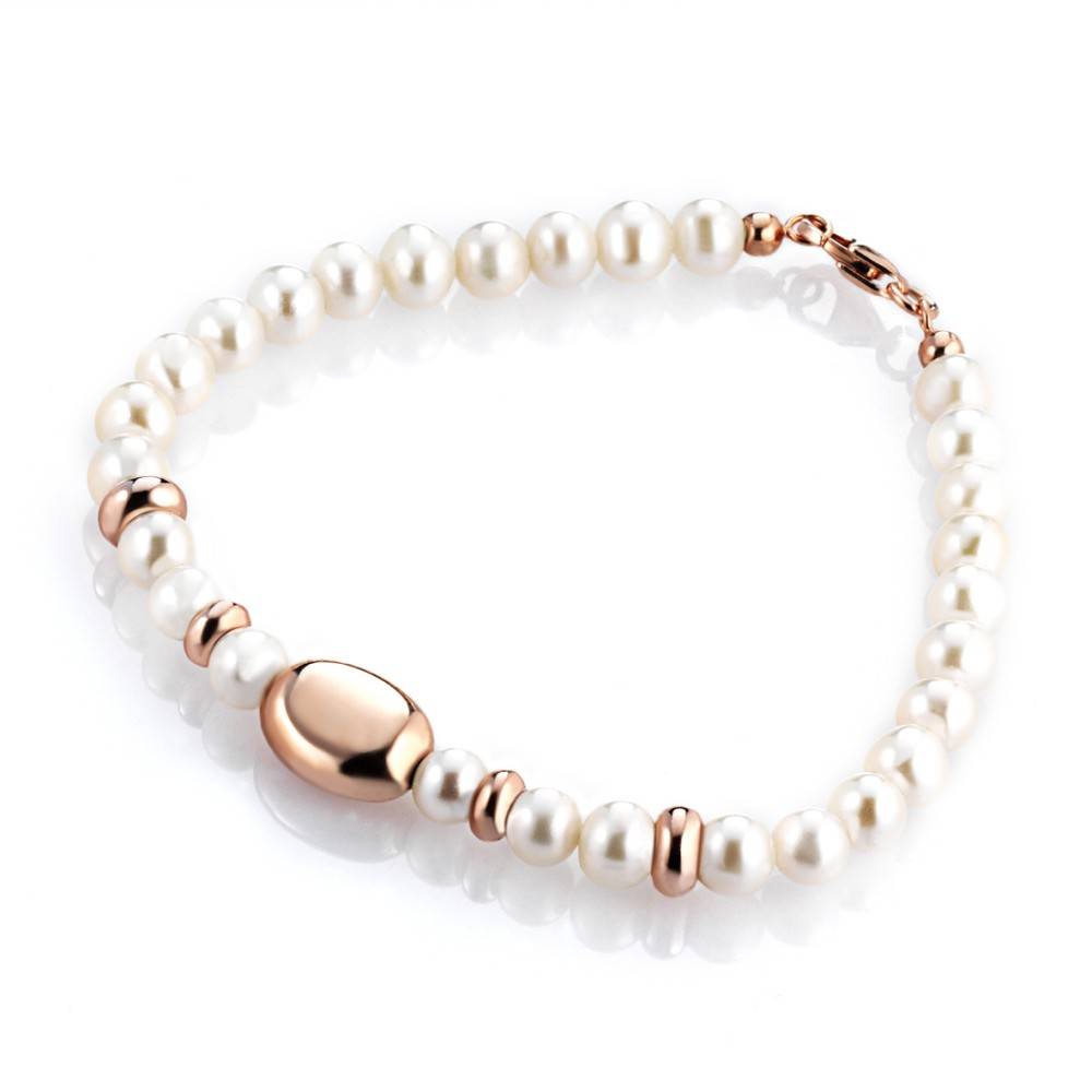 Pulsera de plata 925 con baño de oro rosa de 18kt compuesta por perlas y pepitas rosadas de la colección Petite Boules de Marcello Pane.