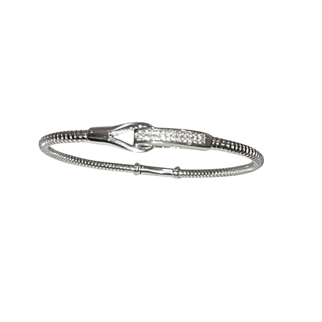 Pulsera rígida de la colección Twist de Marcello Pane en plata 925 bañada en oro blanco de 18 kt con circonita blanca en el cierre.