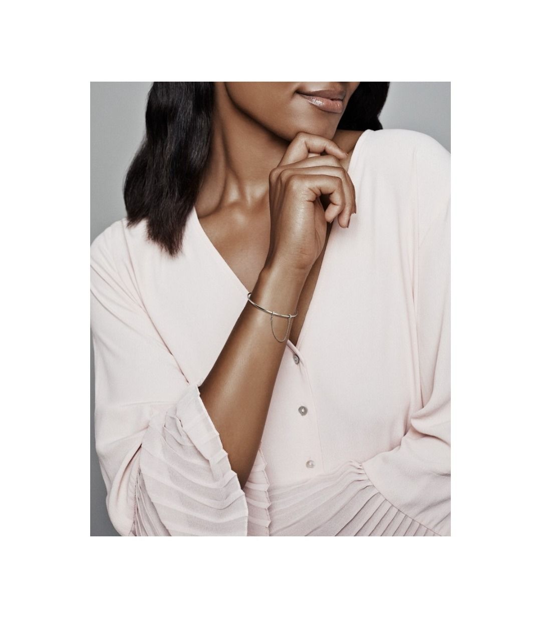 Rinnova il tuo stile con il nostro esclusivo bracciale rigido Pandora Me rifinito a mano. L’elegante e sottile bracciale rigido in Argento Sterling 925 è ricco di dettagli ed è completato dalla nostra classica chiusura a sfera con logo.