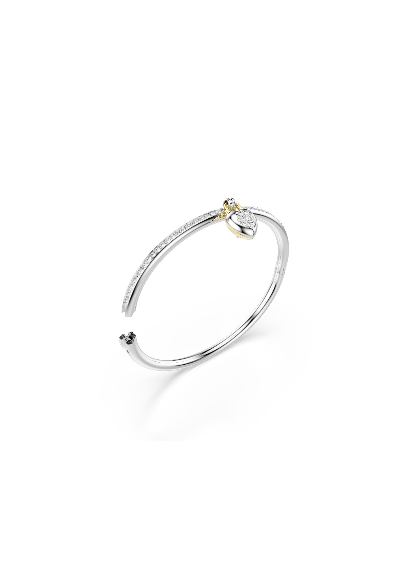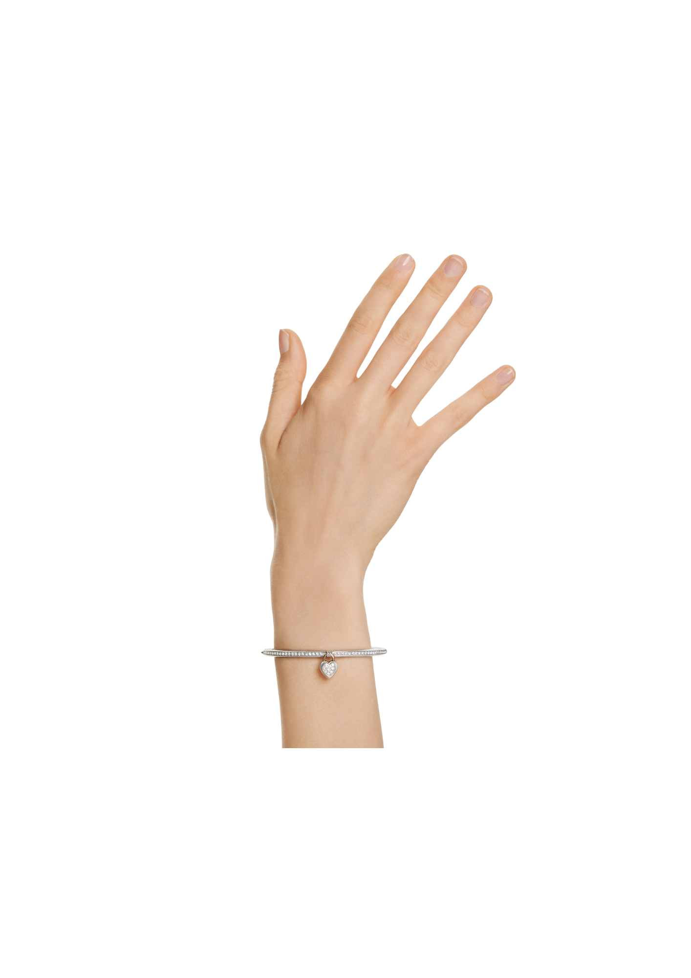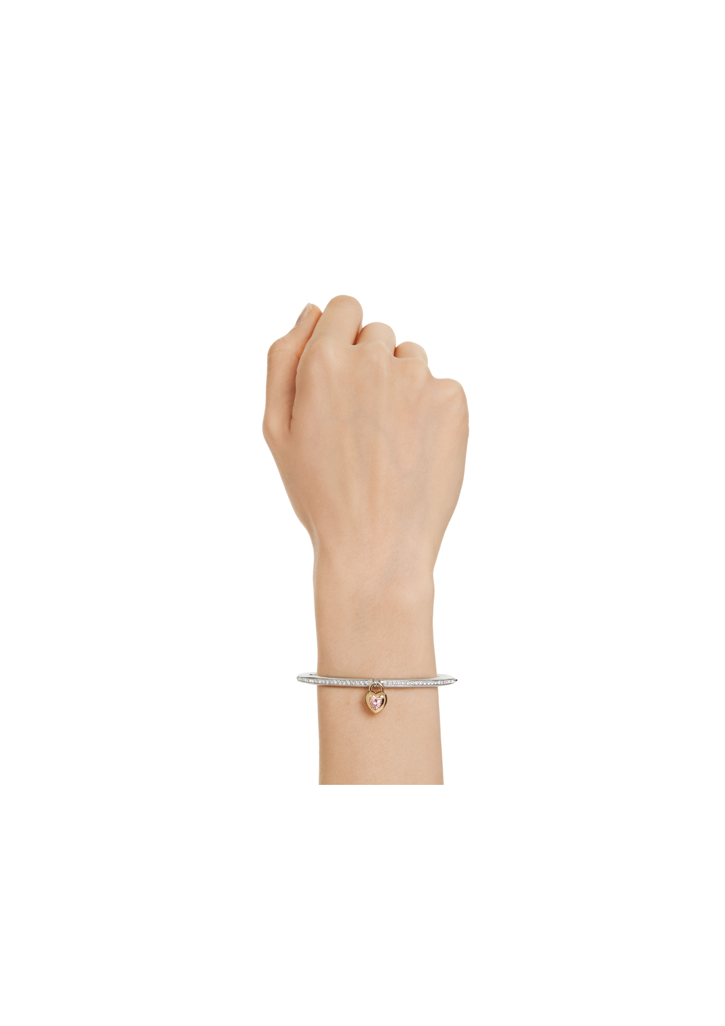 Una lussuosa dichiarazione di romanticismo, il sottile bangle è impreziosito da cristalli Cry e presenta al centro un cuore ispirato a un medaglione. Il motivo romantico presenta una Swarovski Zirconia rosa con placcatura in tonalità oro su un lato, e un pavé di cristalli Cry con placcatura rodio sull'altro lato. Indossalo con l'anello coordinato per massimizzare il look dell'amore.