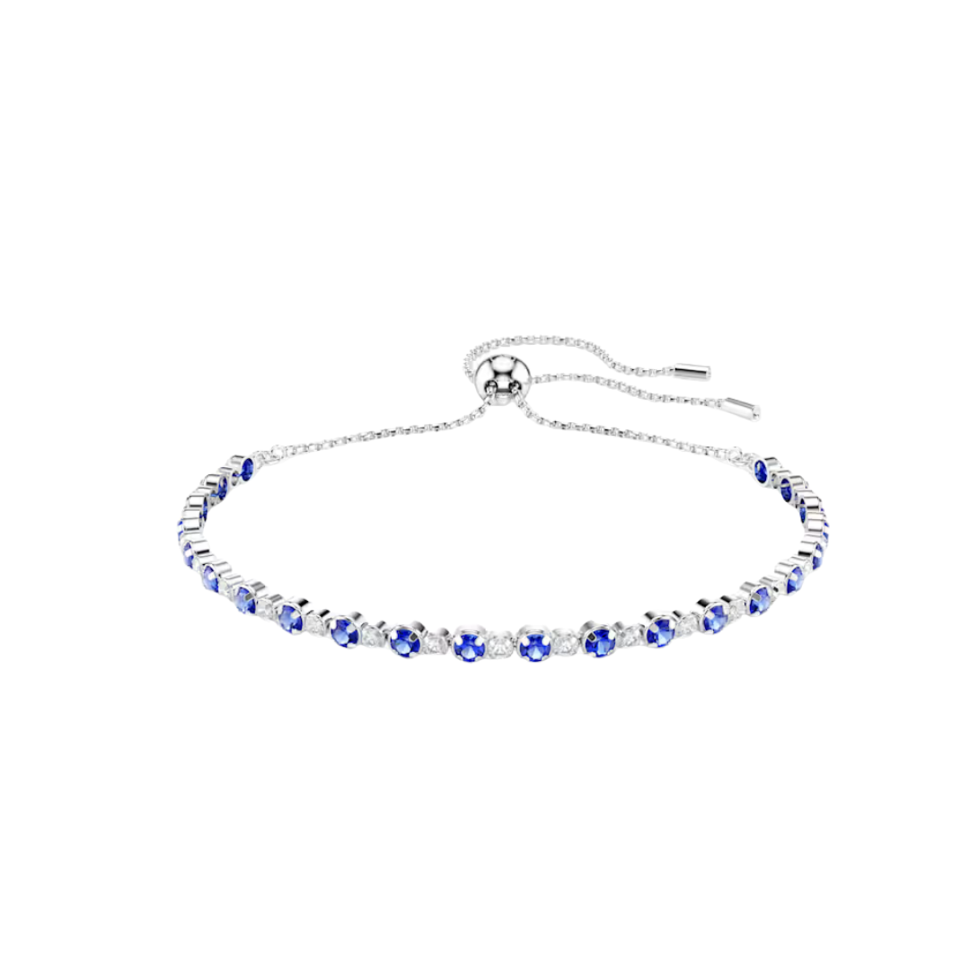 Causa sensación con esta elegante y cautivadora pulsera de tenis de la familia Matrix. Su diseño presenta una deslumbrante hilera de circonitas Swarovski en azul intenso y transparente, y está rematada con un elegante baño de rodio. El cierre deslizante garantiza un ajuste perfecto y personalizado. Longitud máxima: 24 cm.