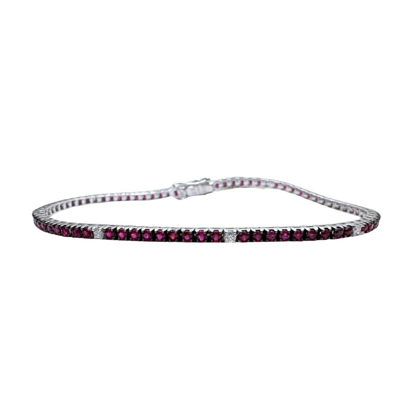 Pulsera de tenis Davite&Delucchi de oro blanco de 18 quilates con rubíes y diamantes