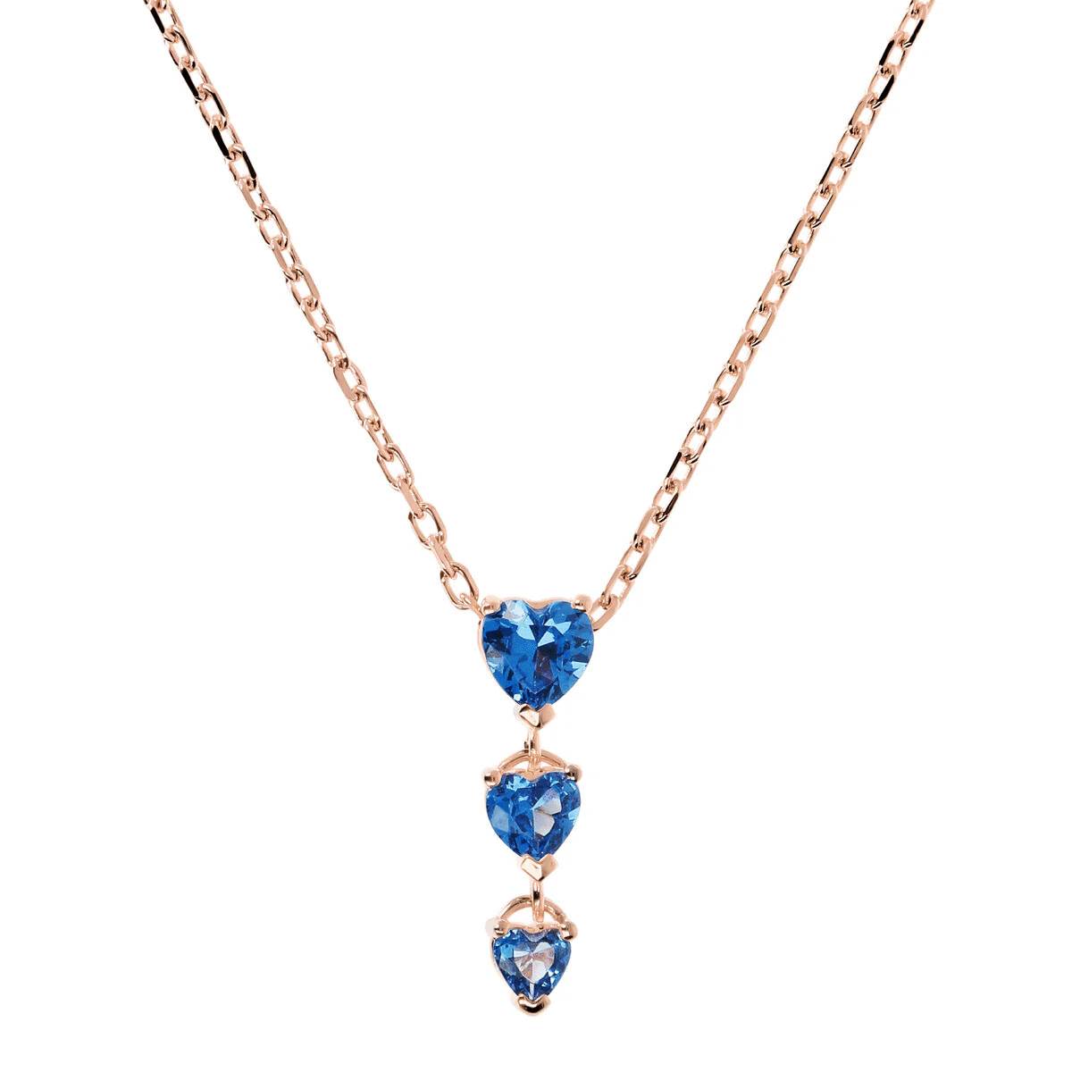 Collar Bronzallure de aleación Golden Rosé, chapado en oro rosa de 18 kt, con cadena tipo cable adornada con un colgante de circonitas cúbicas de tres corazones en degradado y cierre de mosquetón. Largo ajustable con tres anillas (41 cm, 44 cm y 47 cm). Una creación elegante, el diseño perfecto para que tu look brille. Ideal para combinar con la amplia gama de joyas de la colección Altissima, diseñada para ocasiones especiales o para añadir un toque de sofisticación a tu día a día.