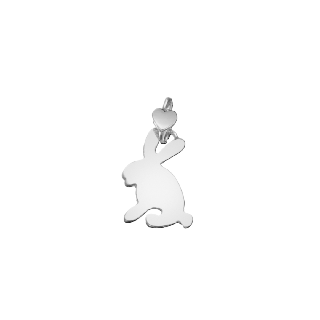 Colgante de la colección Amigos del Corazón, del mágico mundo de la naturaleza. Tema: Conejo "No huyas". Disponible en plata 925 con cierre de corazón de plata 925.