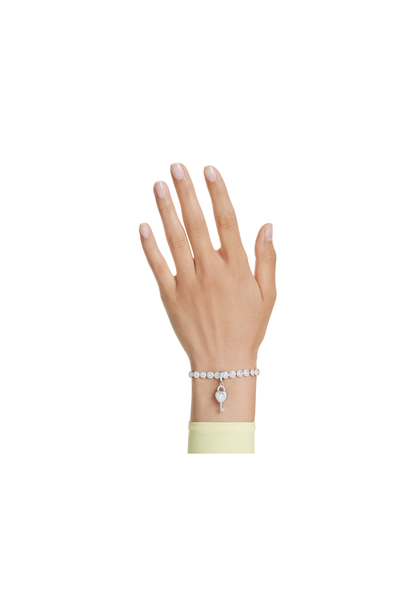 Aggiungendo un tocco personale al tuo stile quotidiano, i charm Swarovski sono compatibili con diversi gioielli delle famiglie Matrix, Una e Idyllia. Il cuore con chiave ispirato a un medaglione è la scelta ideale per chi ha uno spirito romantico. Decorato con una Swarovski Zirconia centrale, il design placcato rodio presenta un'innovativa chiusura che ti permette di indossare il charm su diverse collane e bracciali.