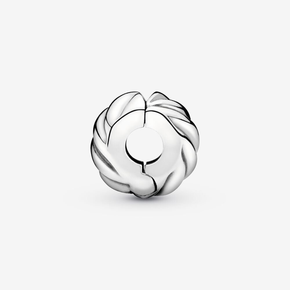Añade profundidad y textura a tu pulsera Pandora Moments con este clip de plata de ley, decorado con líneas curvas que evocan la delicada estructura de las plumas. Pulido a alto brillo, este minimalista clip Pandora es ideal para asegurar tus charms y evitar que se deslicen. Combínalo con otros charms de plata de ley o con metales que contrasten para expresar la libertad de la pluma. Nota: Este clip no tiene inserto de silicona y se deslizará por la pulsera si no se coloca sobre las roscas en relieve o entre dos separadores.