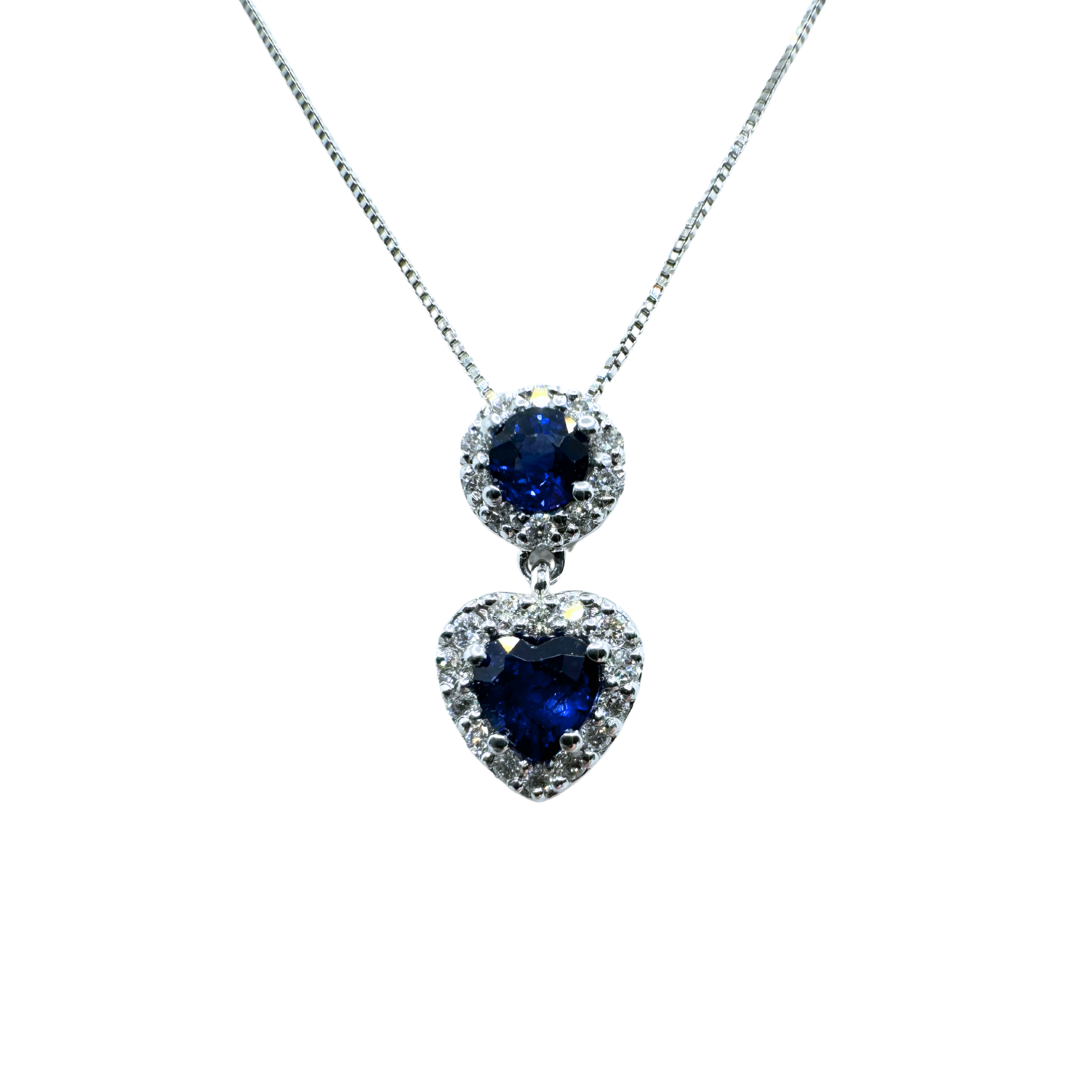 Collar Bibigi con colgante de zafiros talla corazón y diamantes talla brillante