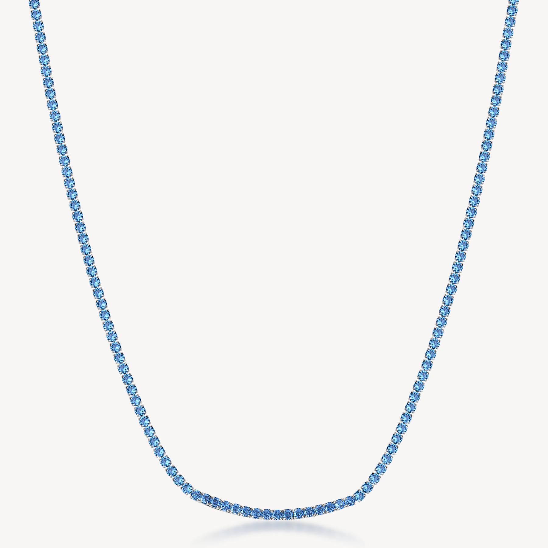 Gargantilla de acero 316L con circonitas cúbicas de color zafiro claro.