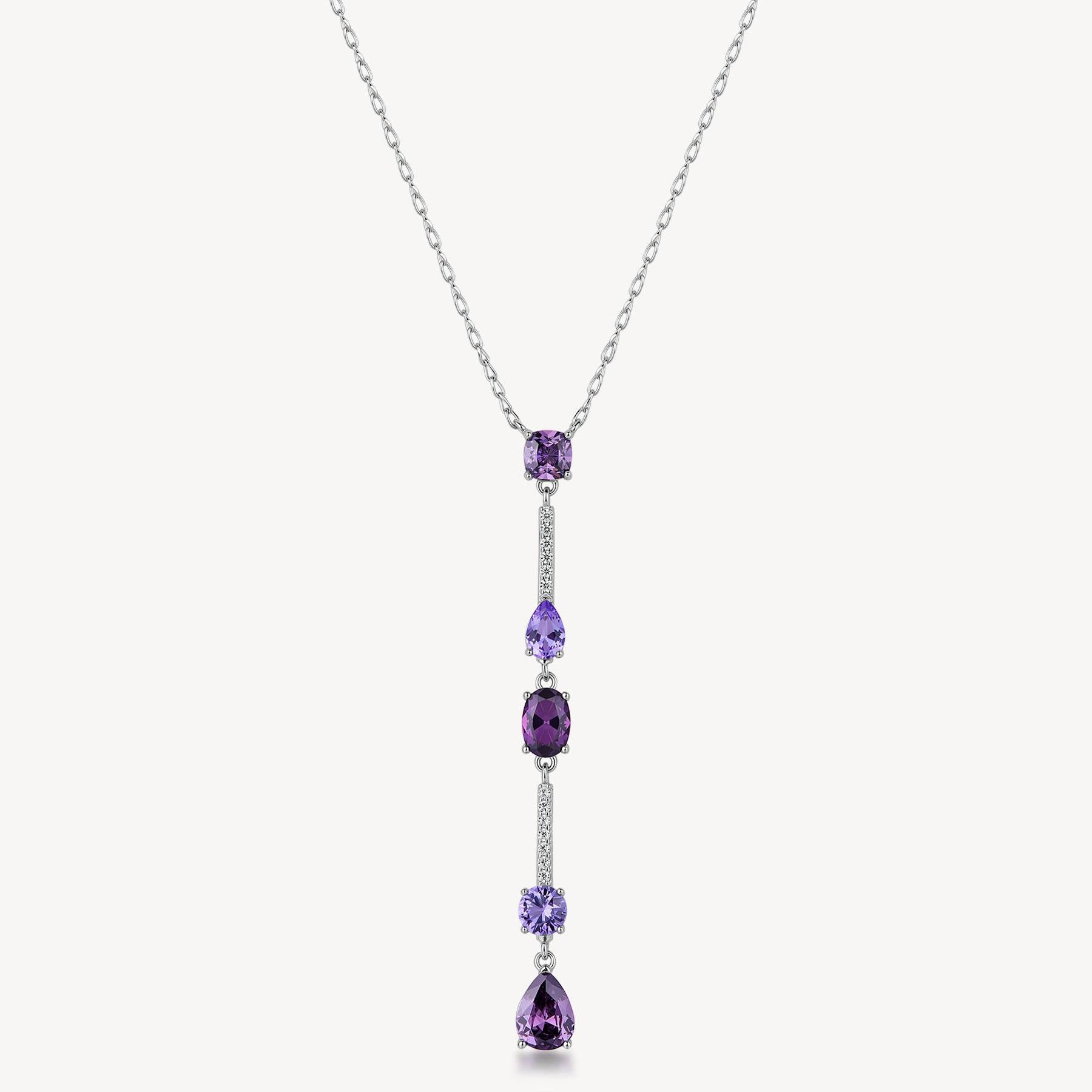 Gargantilla de plata 925‰ rodiada con colgante con circonitas transparentes y circonitas color amatista.