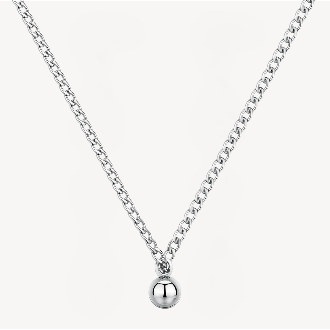 Collana Brosway ORIGIN in acciaio 316L, pendente a sfera, maglia groumette.