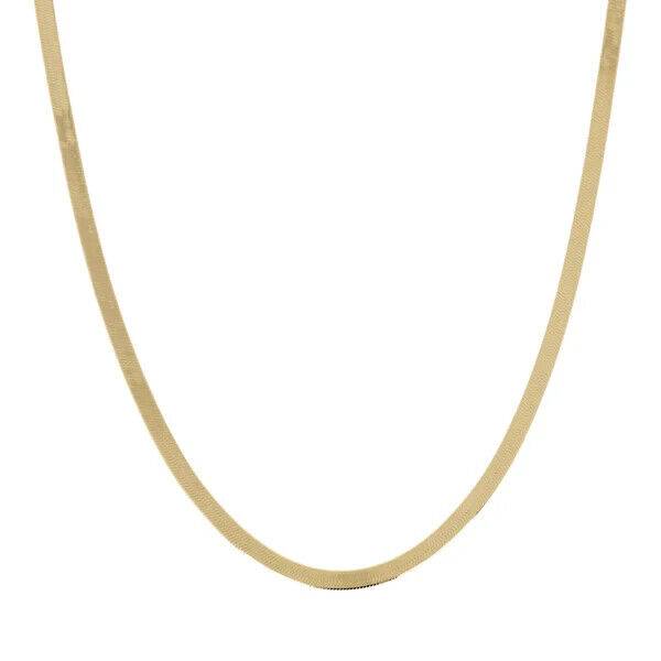 Collar Etrusca Gioielli Matinée de la colección Itaca, elaborado en oro amarillo de 18 kt con baño de oro. La fina cadena plana presenta un acabado ligeramente acanalado y martillado. El collar se completa con un cierre de mosquetón.