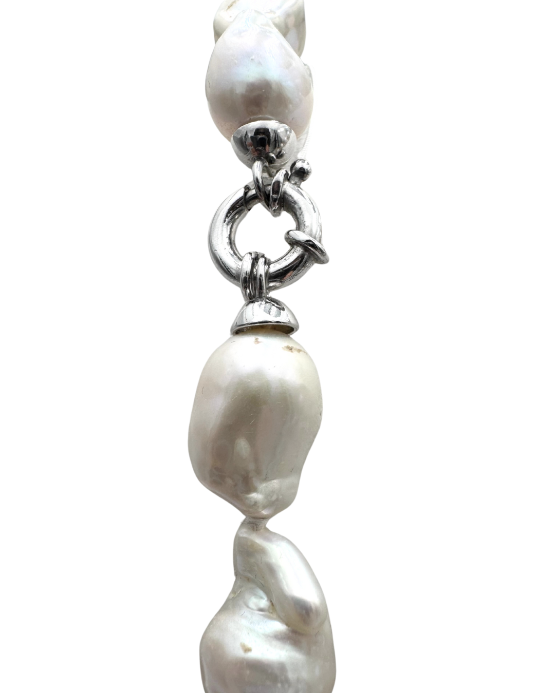 Collar de perlas barrocas con cierre de mosquetón de plata de ley 925. Largo 60 cm.