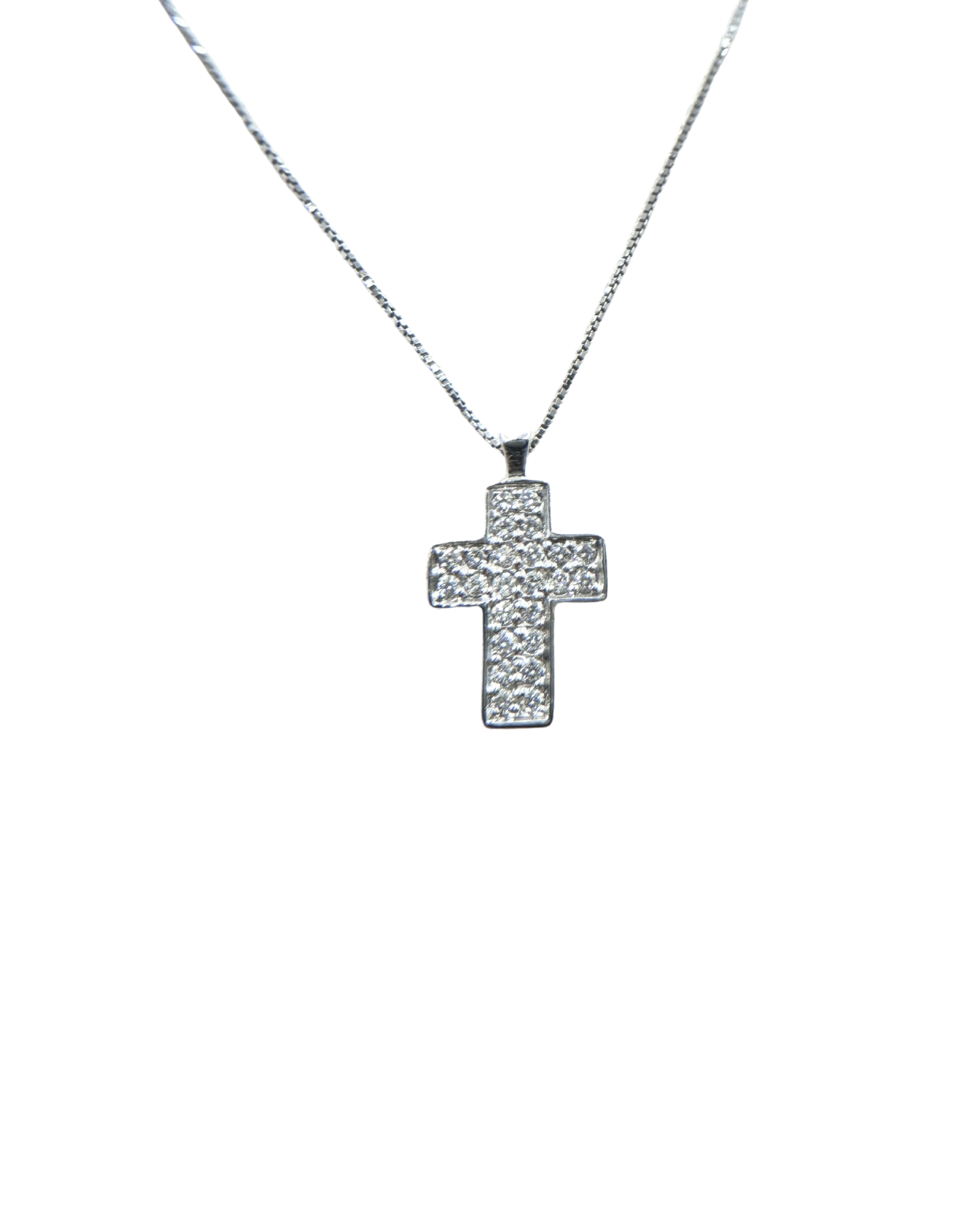 Collar con cruz Bibigì en oro blanco de 18 kt con pavé de diamantes