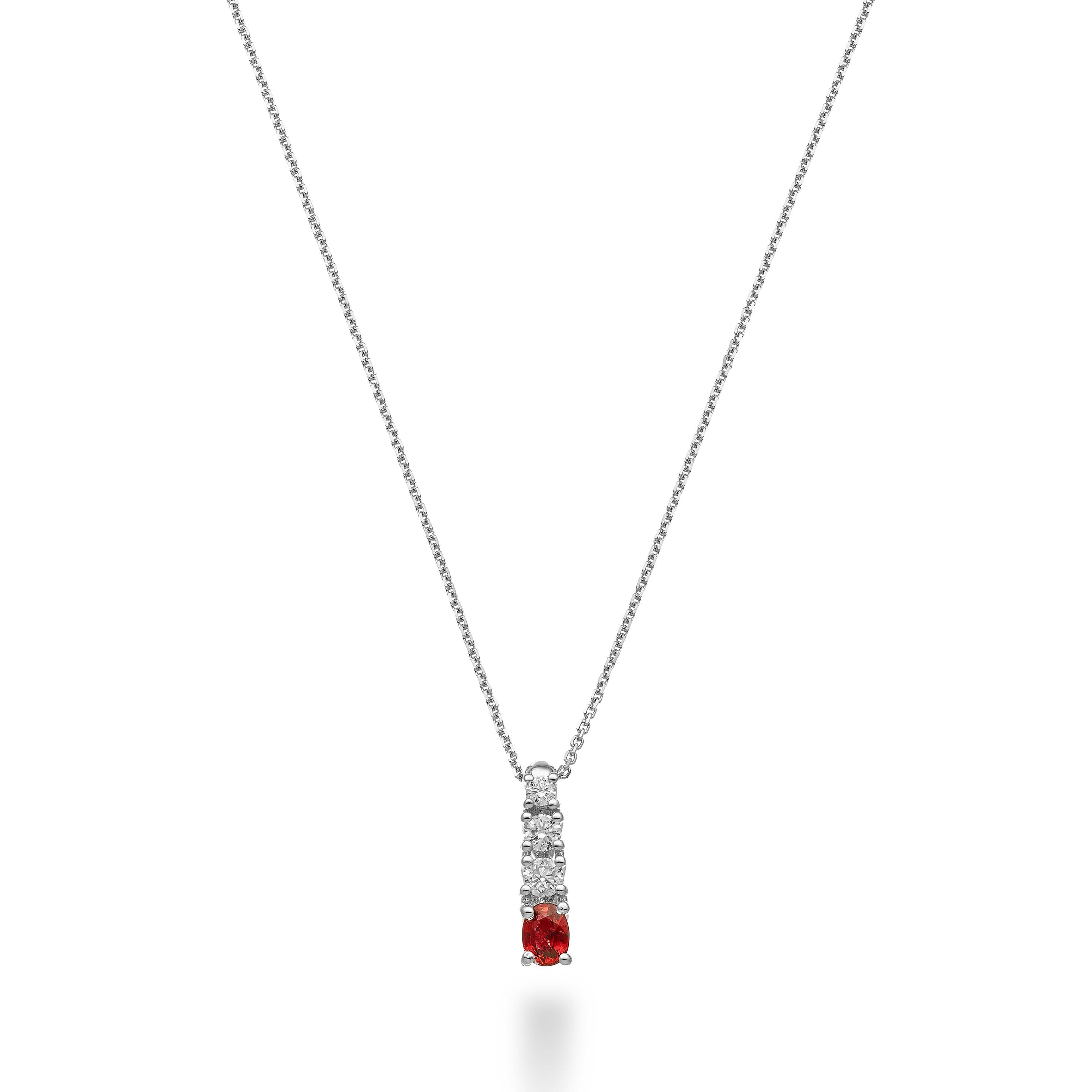 Collar Golay de oro blanco con colgante con un rubí de talla ovalada de 0,23 ct y diamantes de 0,16 ct