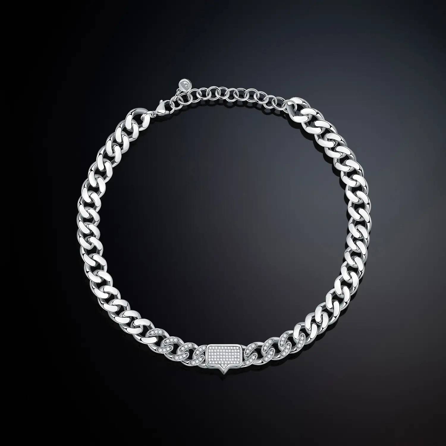Collar para mujer, colección Bossy Chain de Chiara Ferragni. Cadena barbada con circonitas blancas y baño de rodio. Dimensiones: 38 cm + 7 cm. Largo ajustable. Descubre la colección Ferragni actualizada; un imprescindible de esta temporada.