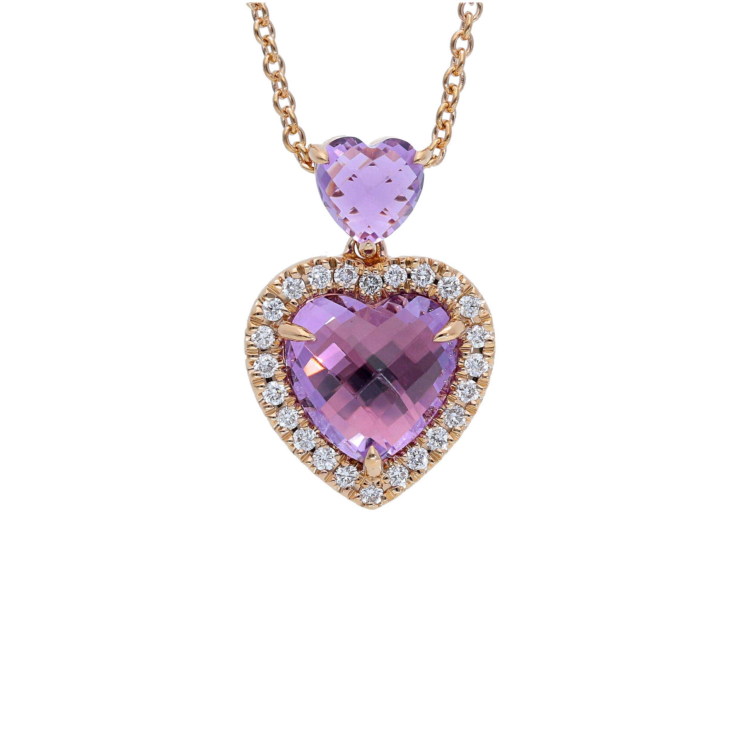 Collar Iannelli hecho a mano en oro rosa de 18 quilates con amatistas y diamantes en forma de corazón.