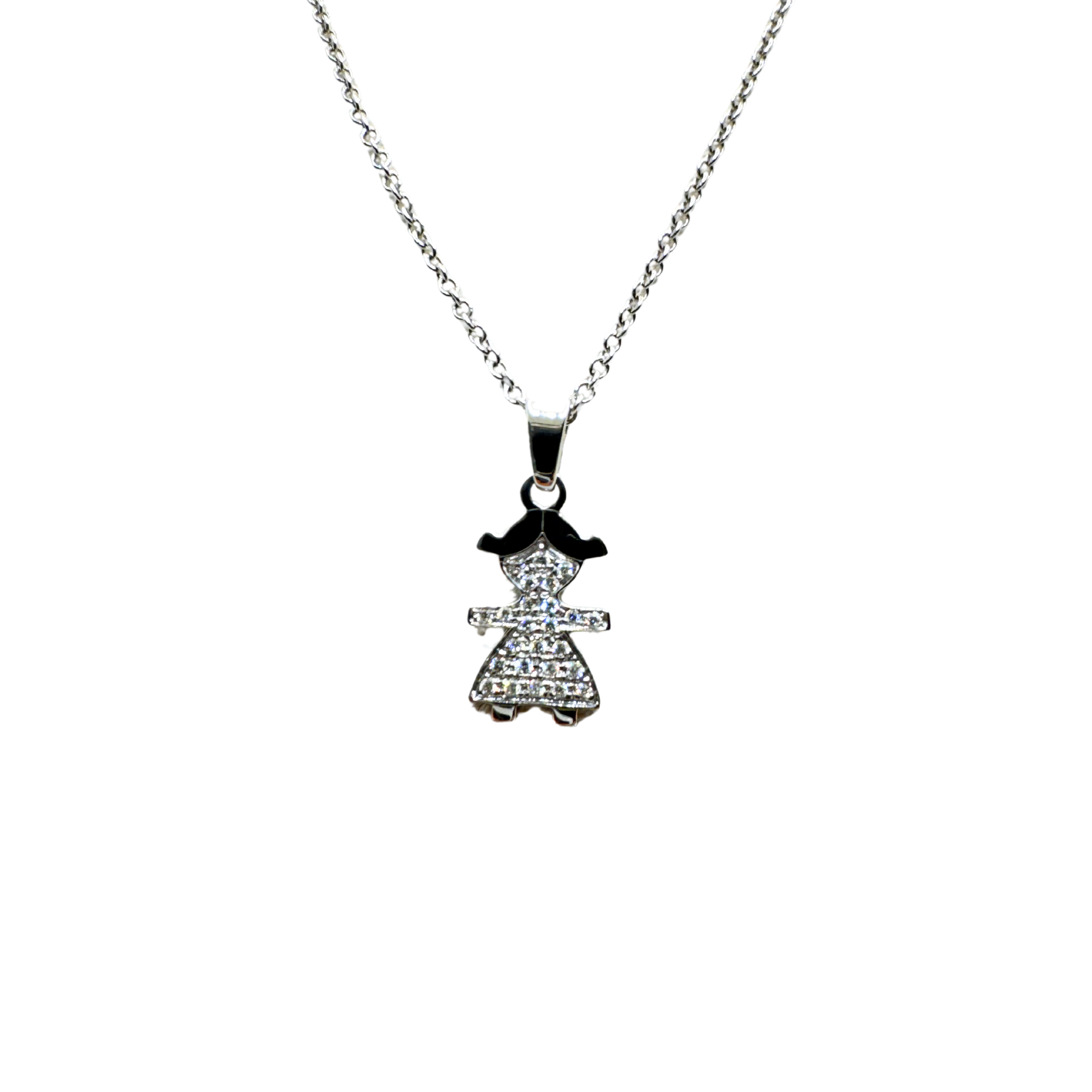 Collar de oro blanco de 18 kt con colgante de bebé y pavé de diamantes