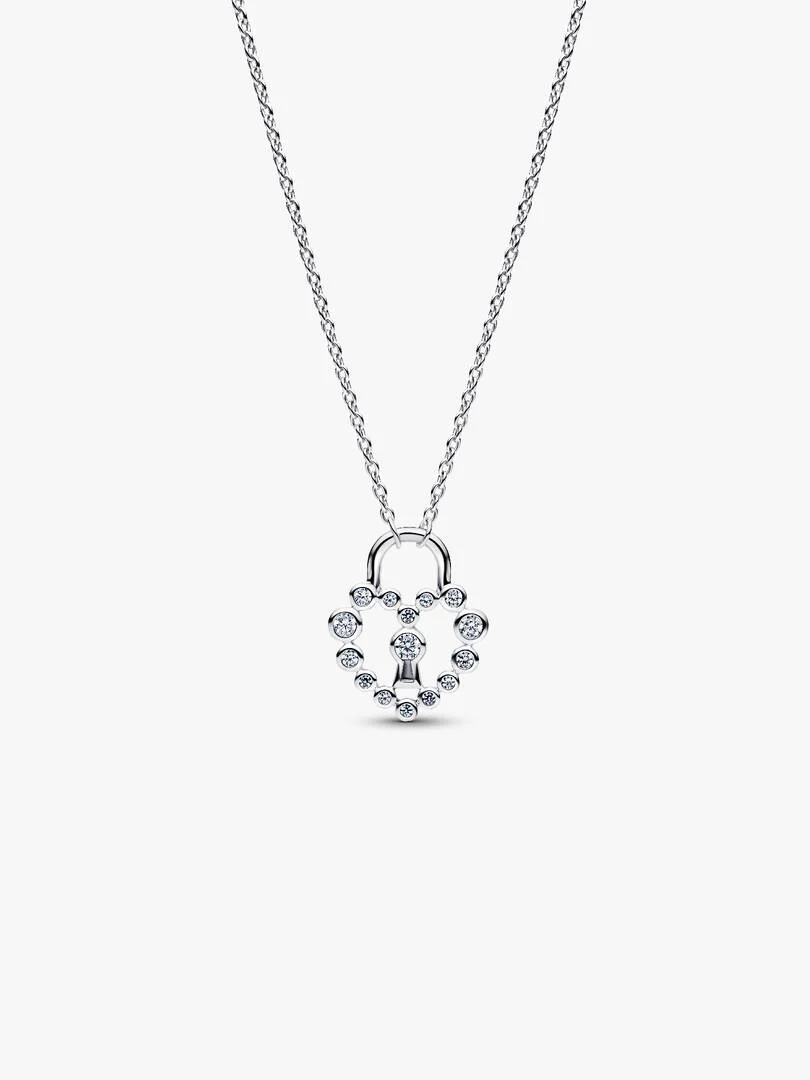 Celebra chi ami. Questa collana risplende con piccole pietre luminose che creano un lucchetto a forma di cuore e simboleggia amore e unione.