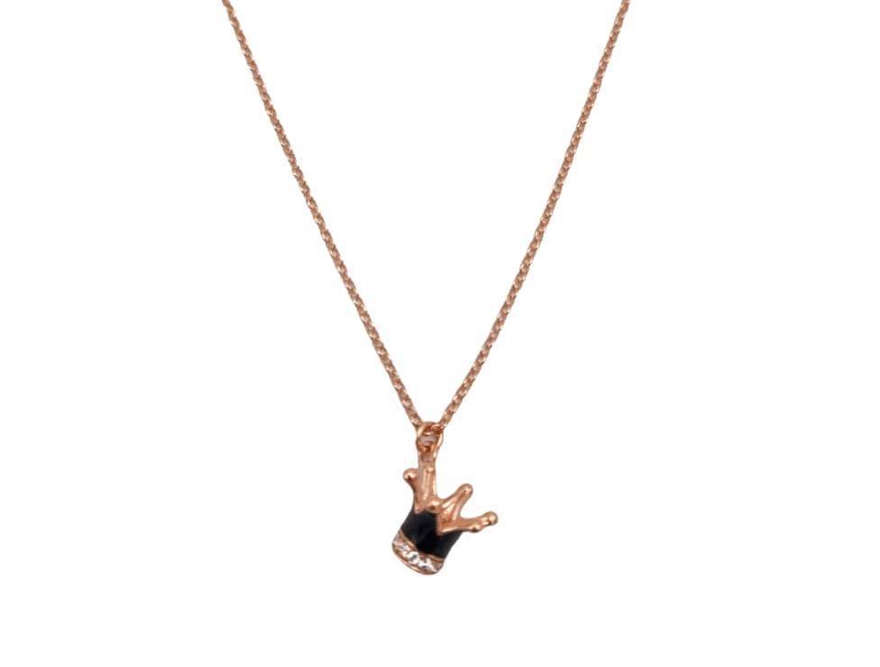 Collar de plata 925 con colgante de corona esmaltada a mano en blanco y negro, bañado en oro rosa de 18 quilates, con brillantes circonitas cúbicas.
