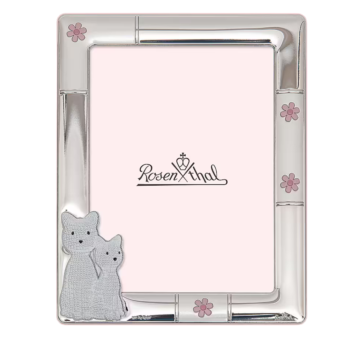 Marco de fotos Rosenthal Mei con gatos. Tamaño de la foto: 9 x 13 cm. Material: plateado.
