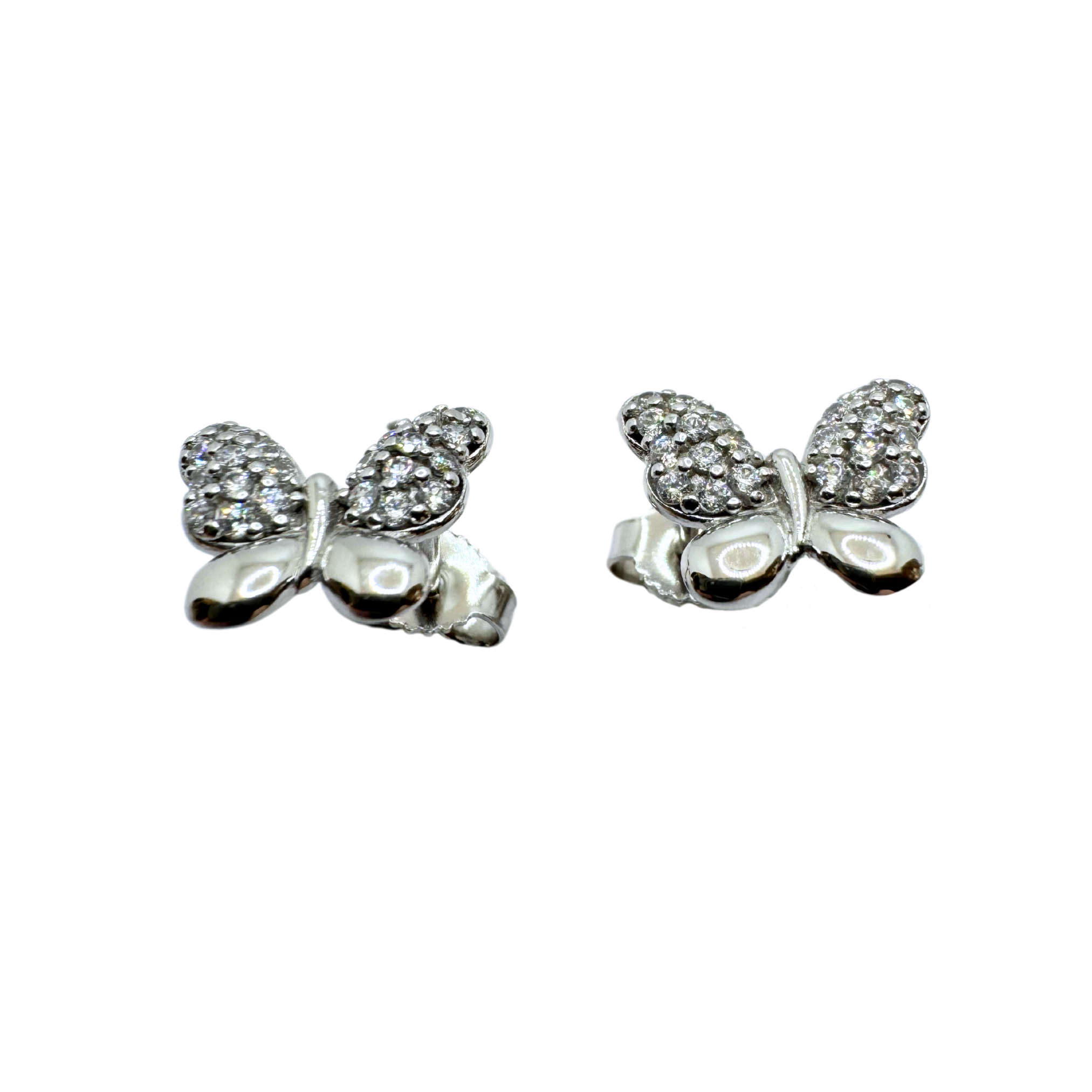 Pendientes de mariposa de oro blanco de 18 kt con circonitas